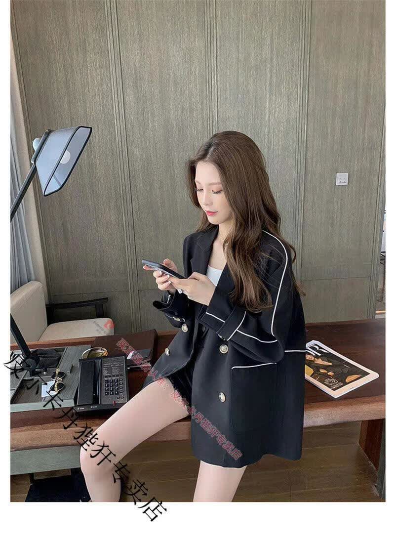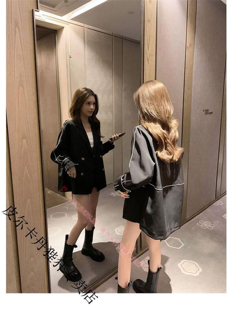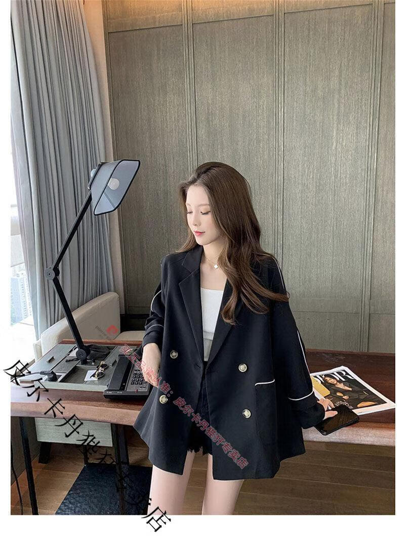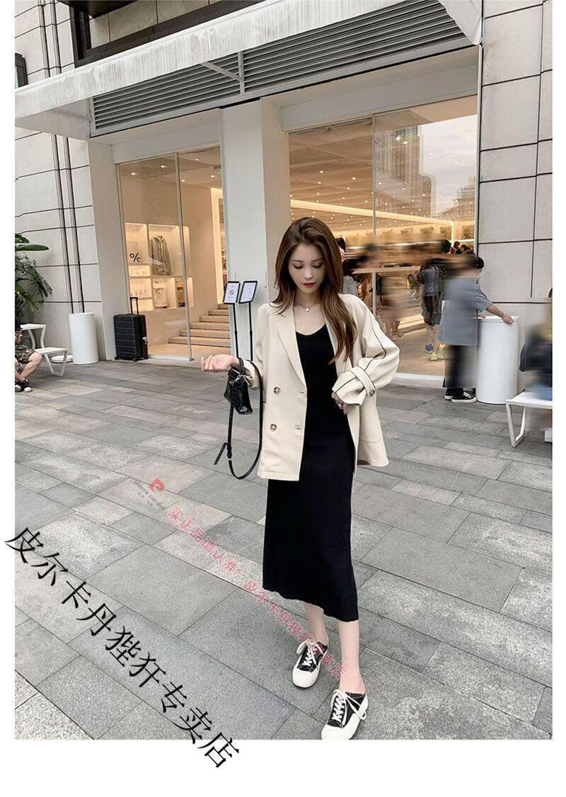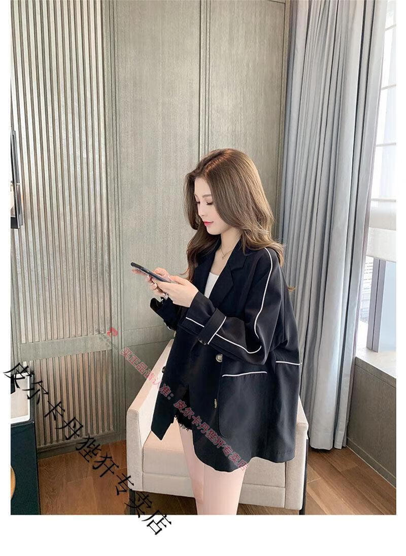 Pierre Cardin blazer women's loose 2025 spring and autumn new Korean style design contrasting topstitch casual suit top apricot XL