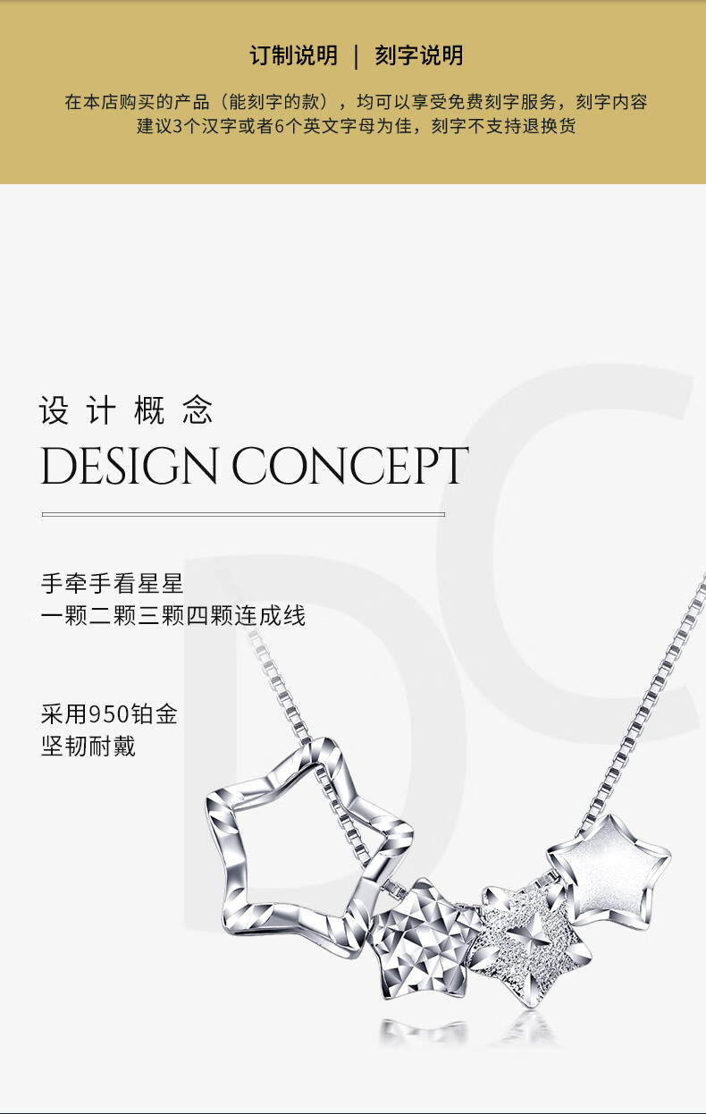 Pt.Charm new platinum necklace female meteor shower PT950 platinum necklace new year birthday gift for girlfriend and wife ready stock national inspection certificate 2.1-2.2g