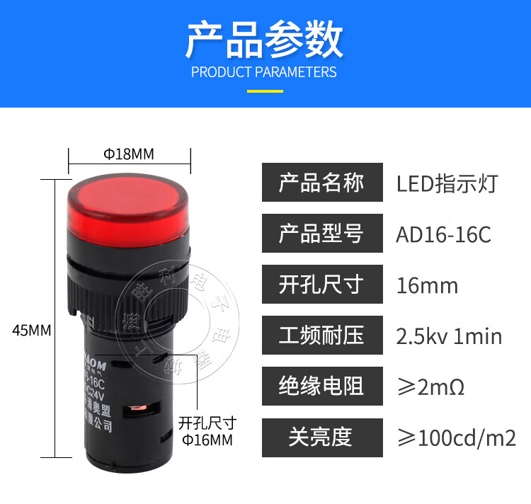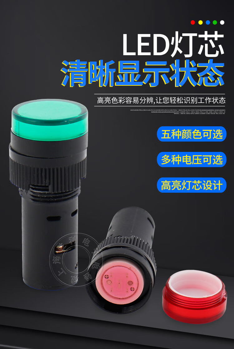 Power indicator light AD16-16Cled signal opening 16MM24V220V380V red, yellow, green, blue and white red AC DC 12V