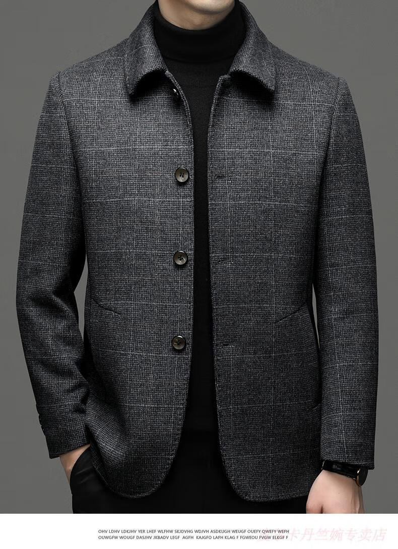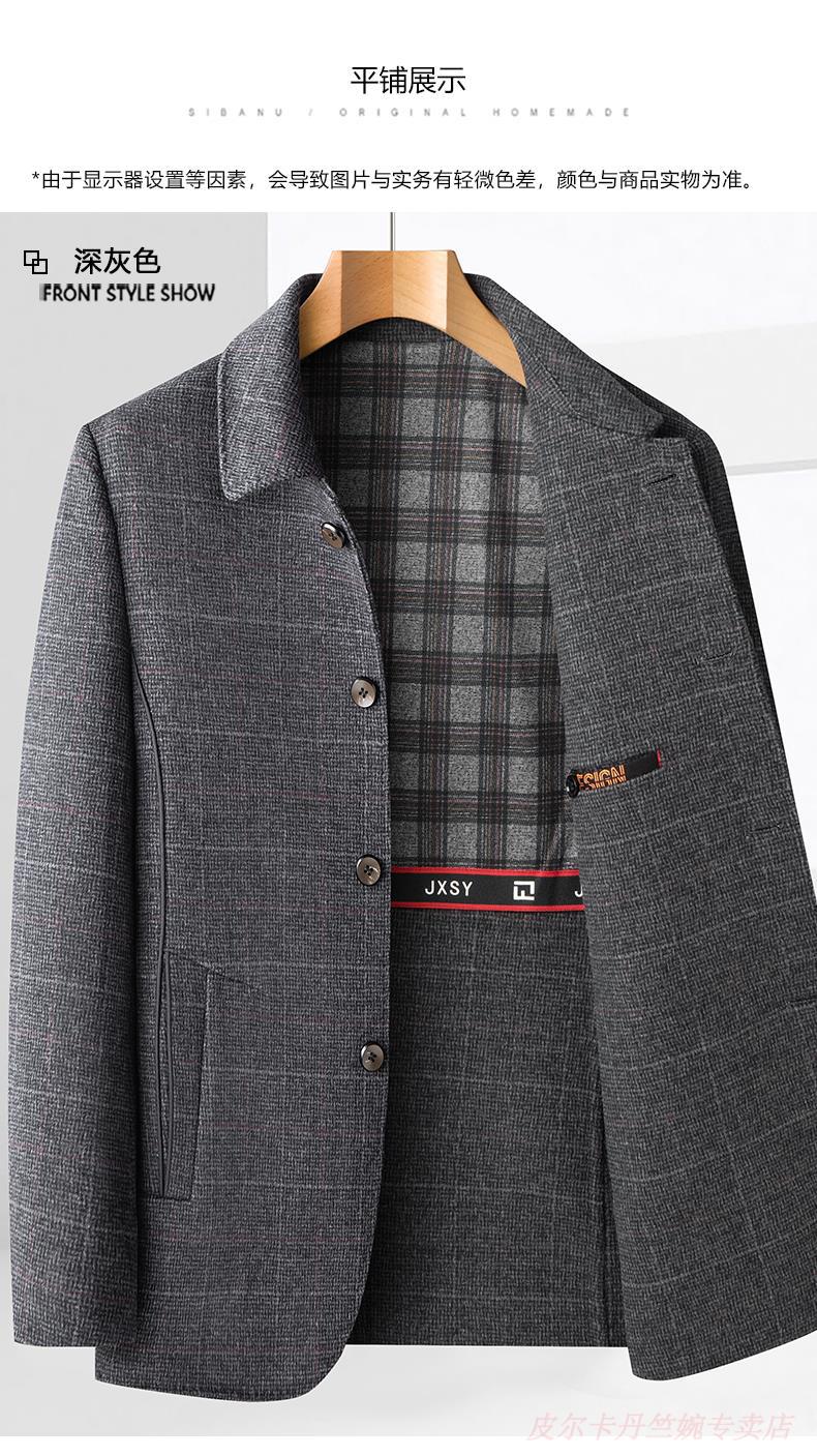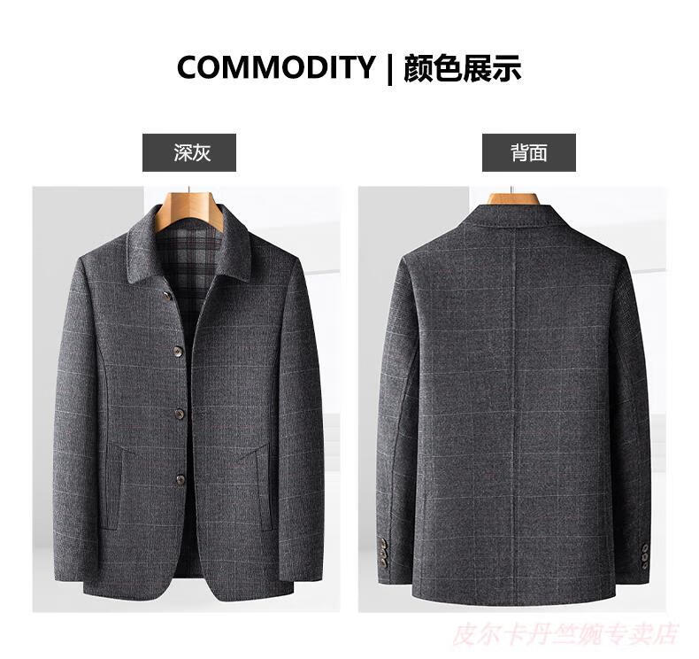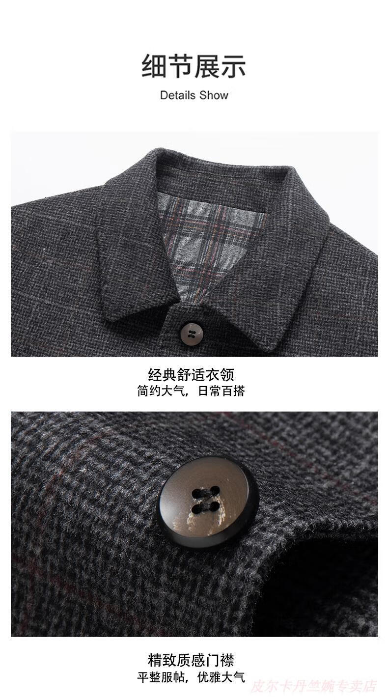 Pierre Cardin double-sided woolen jacket men's lapel short woolen casual coat autumn and winter middle-aged dad's jacket top men K162-1 dark gray 195 suitable for 180-195Jin Jin is equal to 0.5 kg