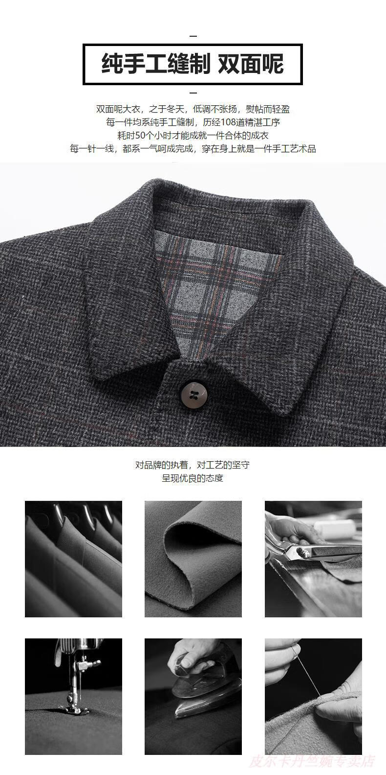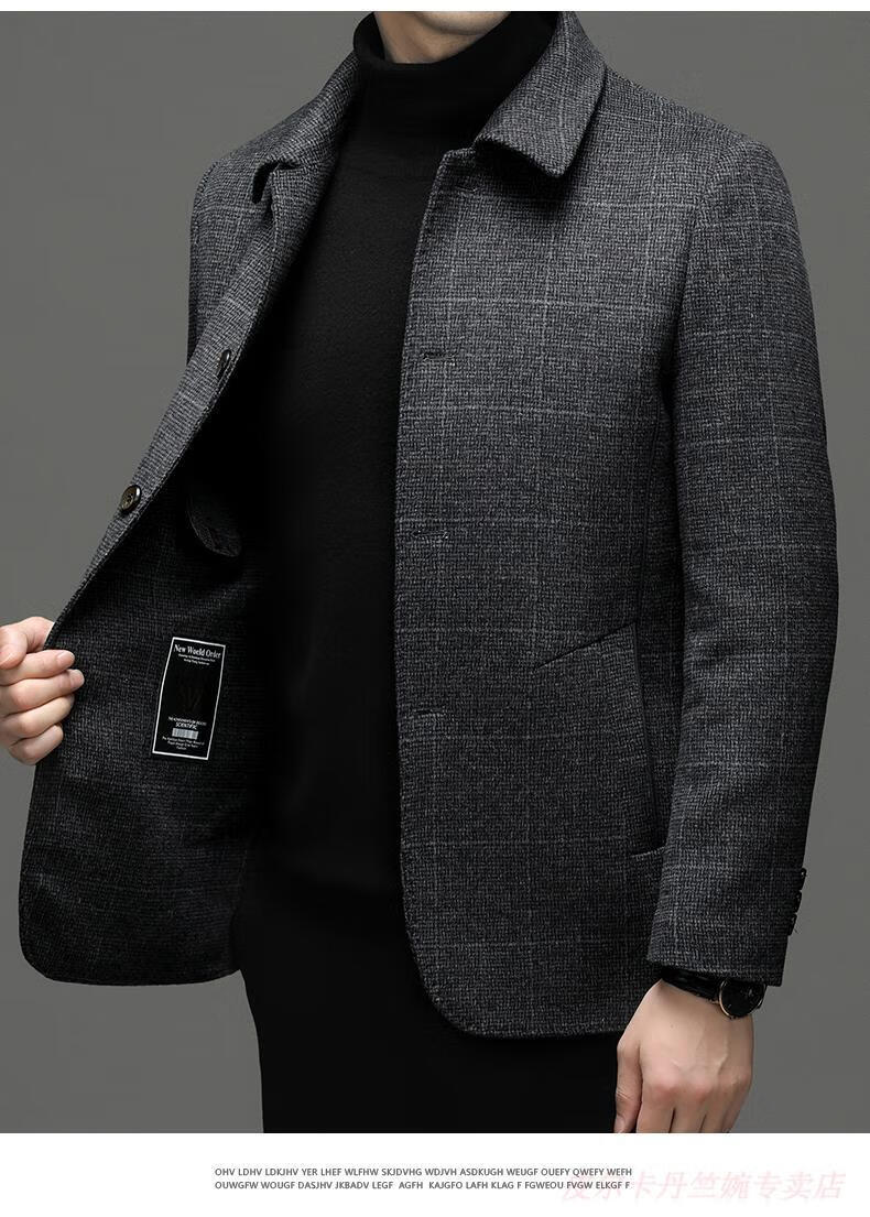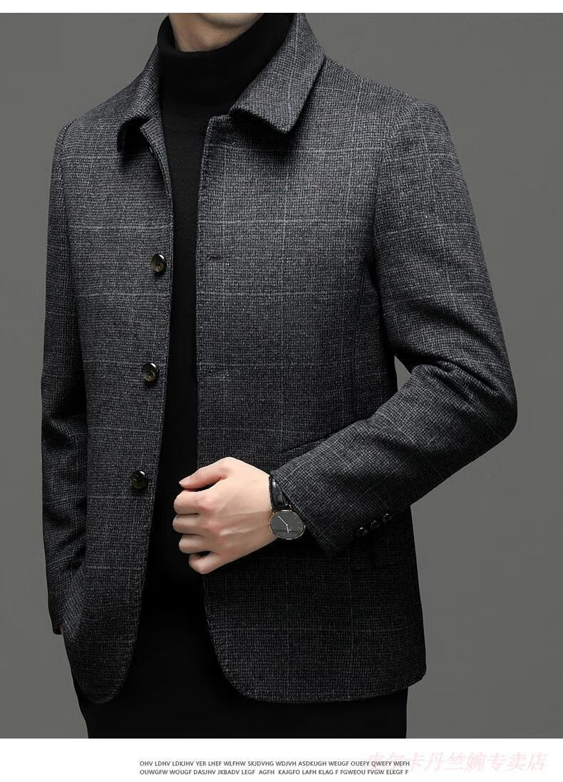 Pierre Cardin double-sided woolen jacket men's lapel short woolen casual coat autumn and winter middle-aged dad's jacket top men K162-1 dark gray 195 suitable for 180-195Jin Jin is equal to 0.5 kg