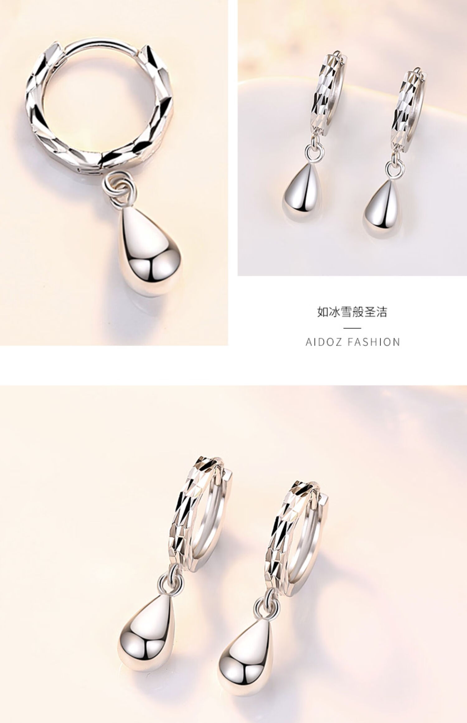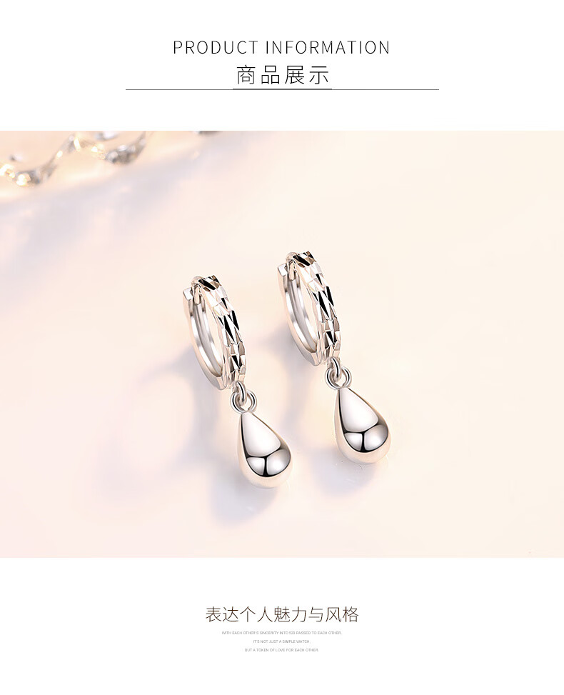 Jiuchangshi 99 sterling silver earrings for women, silver earrings, fashionable earrings, round drop earrings, birthday gifts for girlfriend, 99 pure silver, weighing about 3.8g