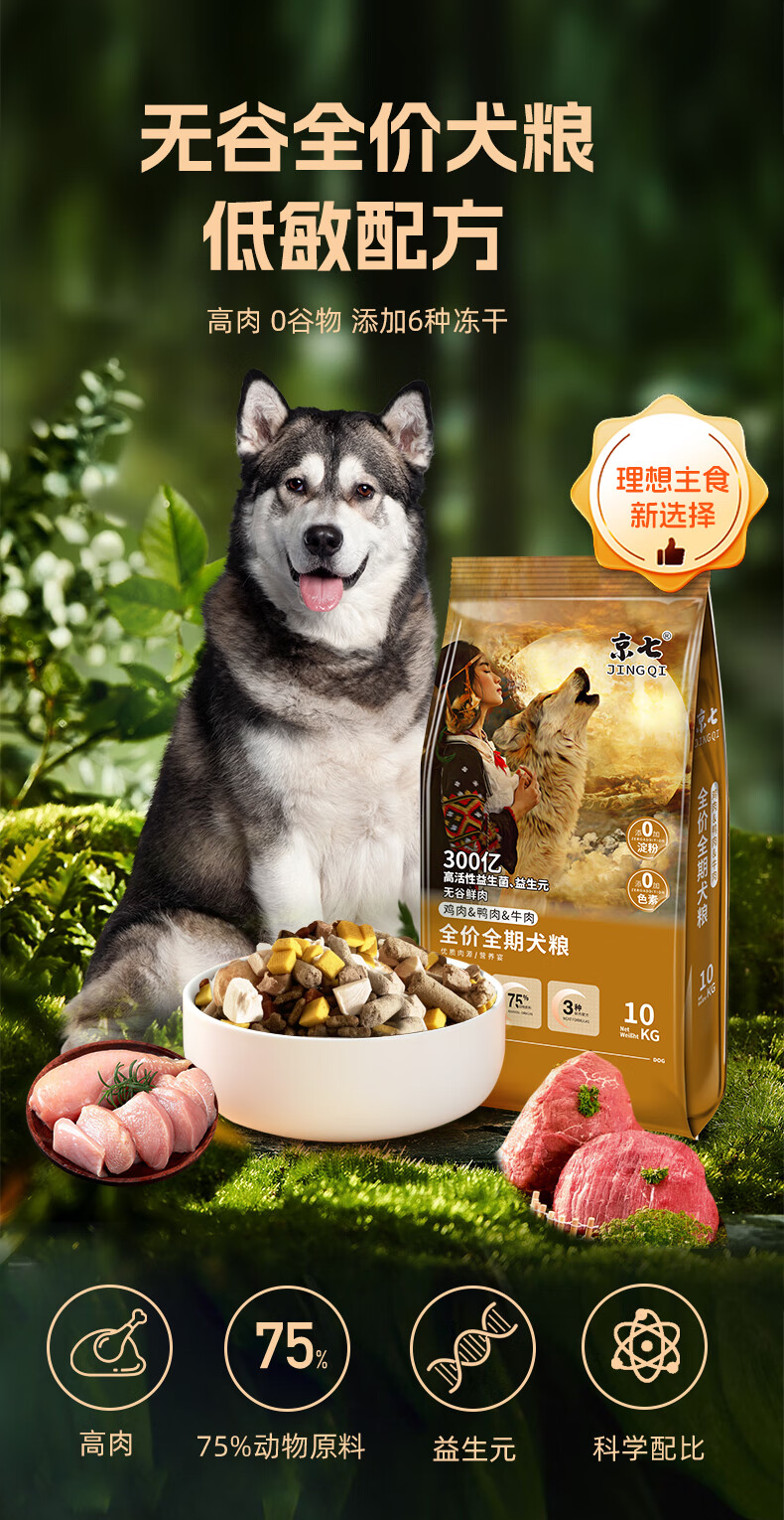 Jingqi Grain-Free Fresh Meat Dog Food for All Stages of Adult Dogs and Puppies, Medium-sized Dogs and Large Dogs, Full-price Universal Freeze-Dried Natural Dog Food, Full-price Universal Dog Food 100Jin Jin is equal to 0.5kg (Freeze-dried Seven Pieces)