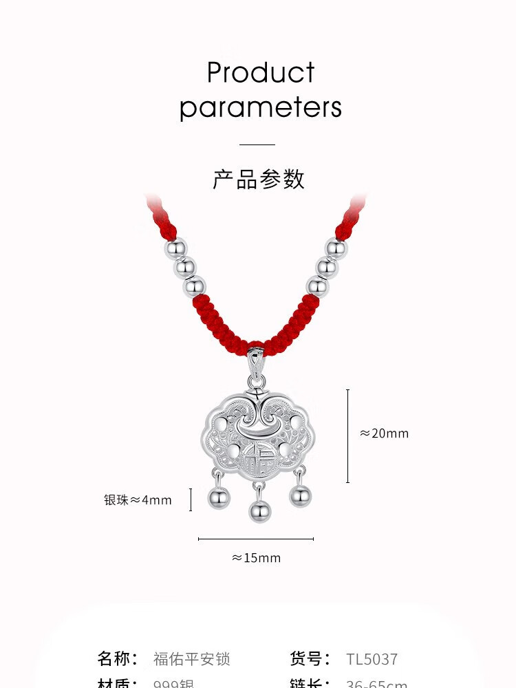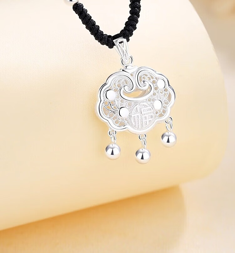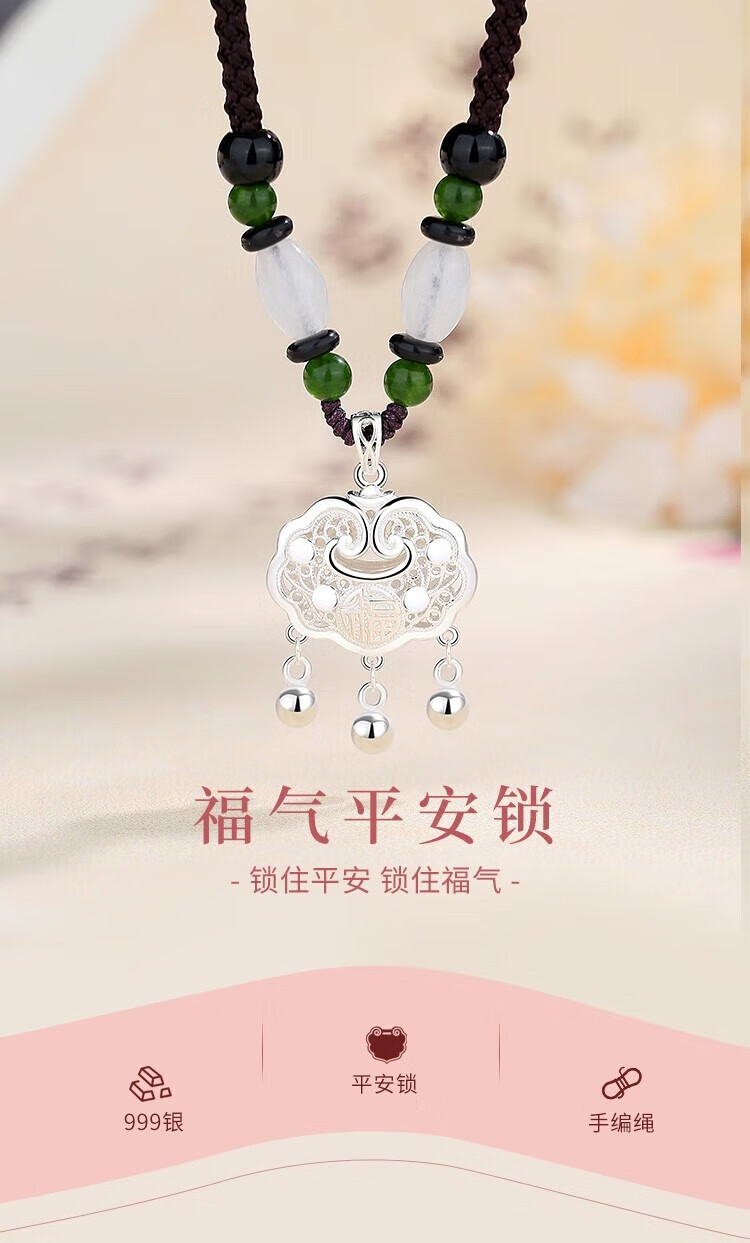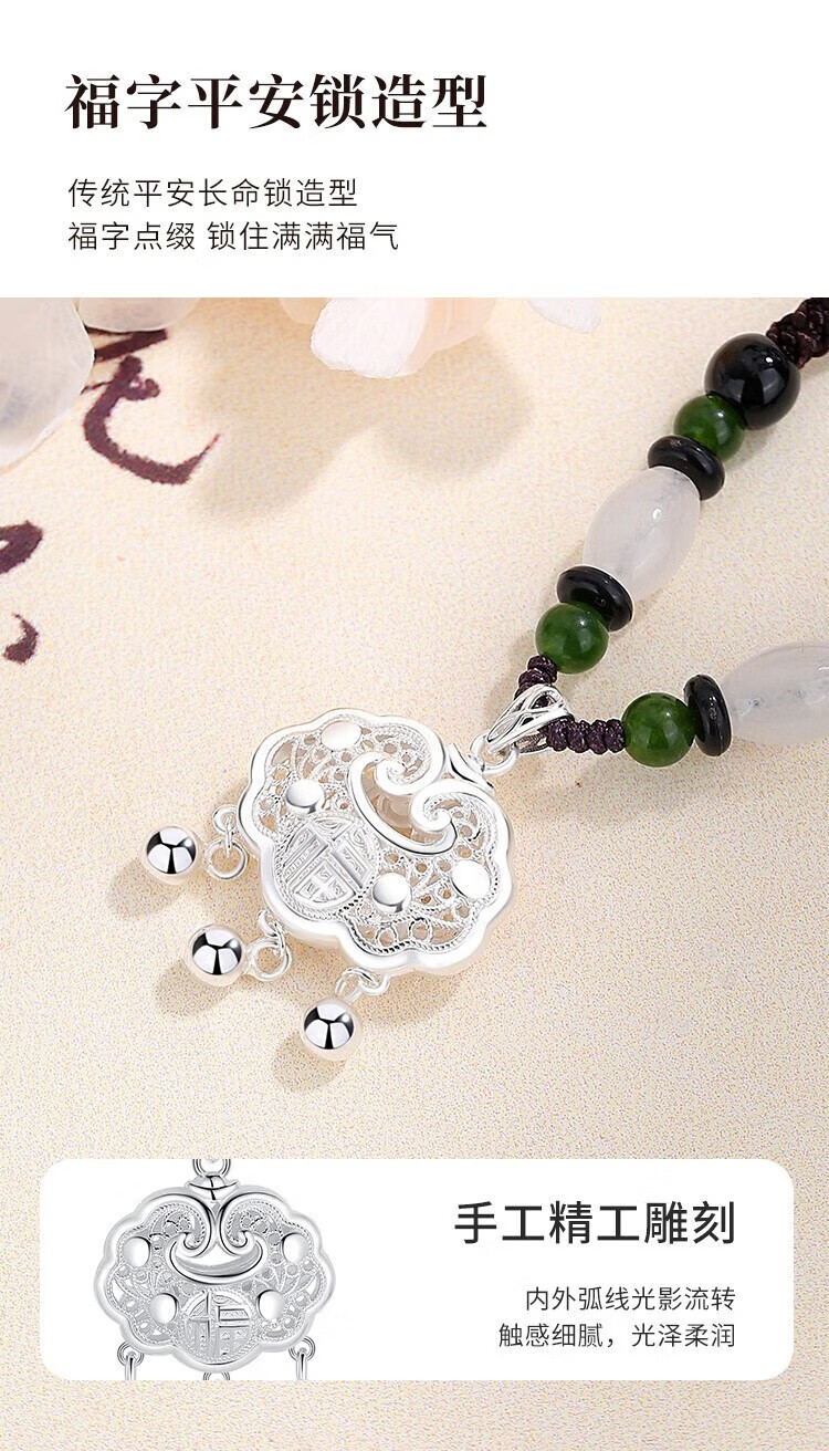 Ginqianhui 999 pure silver necklace for women, wishful and safe long life lock pendant to commemorate birthday and Valentine's Day gift for girlfriend Fuyou safe lock necklace (extended version) + merchant delivery / ghostwriting greeting card exquisite gift box