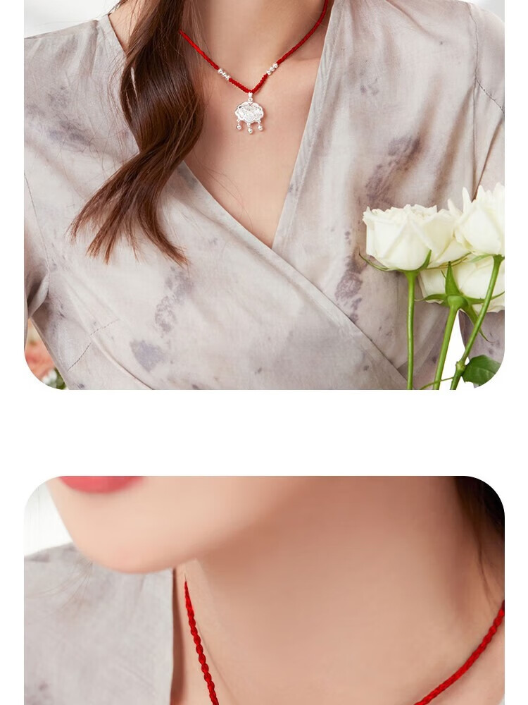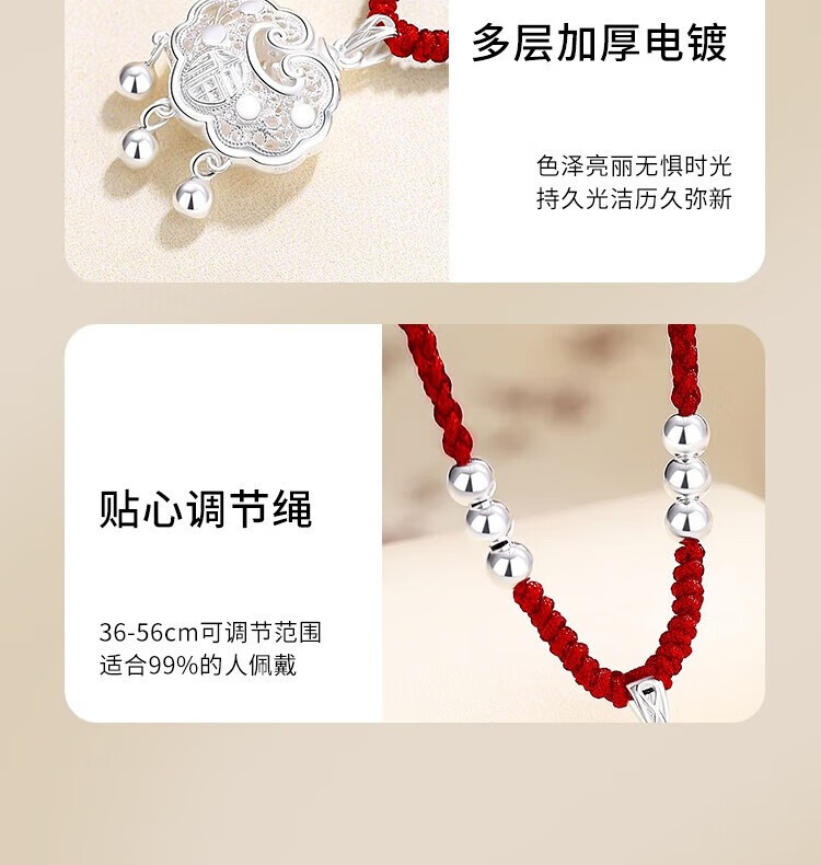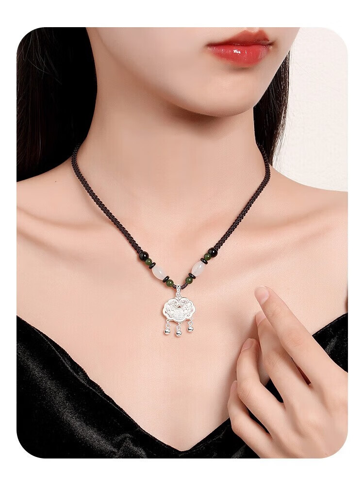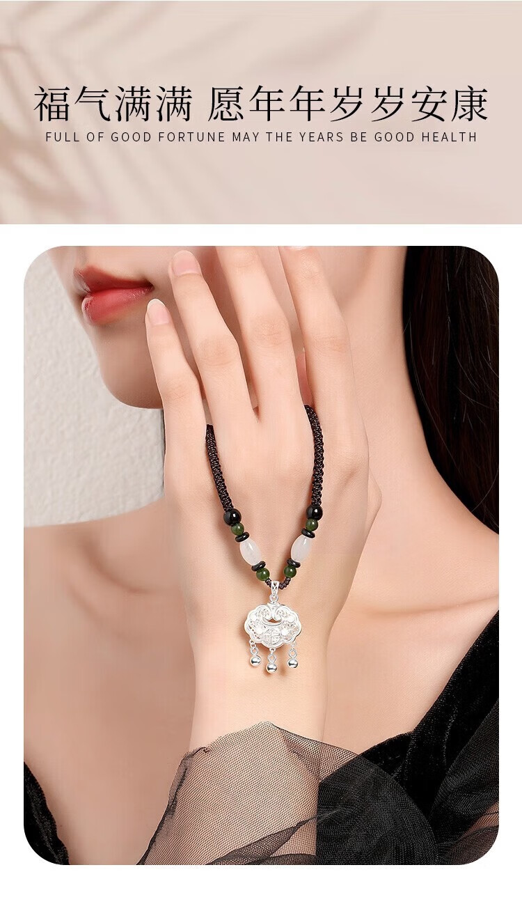Ginqianhui 999 pure silver necklace for women, wishful and safe long life lock pendant to commemorate birthday and Valentine's Day gift for girlfriend Fuyou safe lock necklace (extended version) + merchant delivery / ghostwriting greeting card exquisite gift box