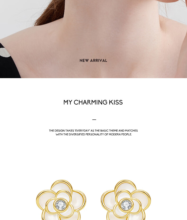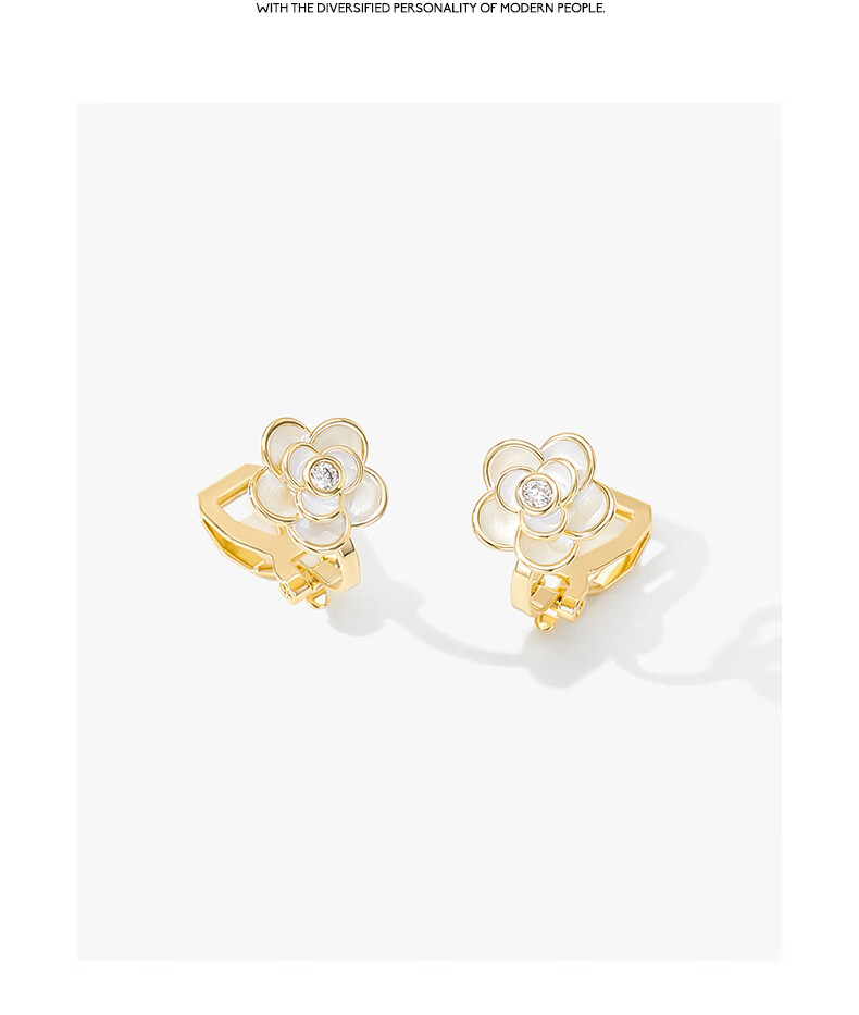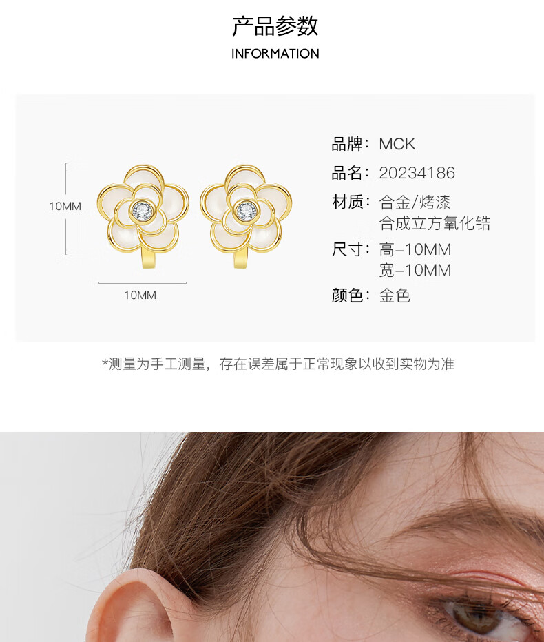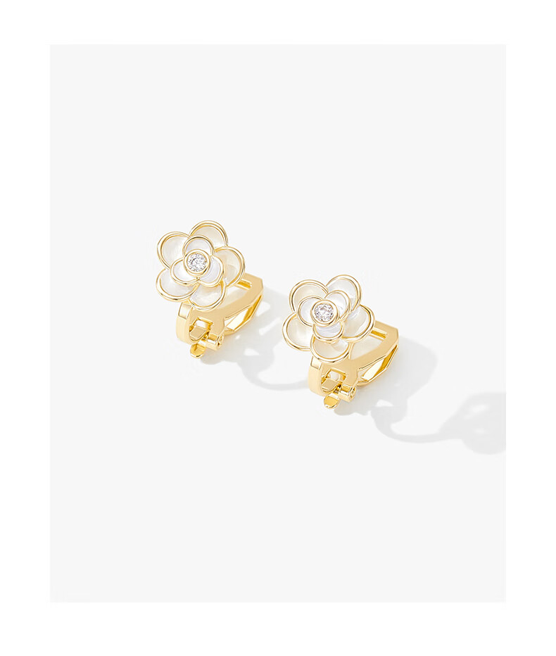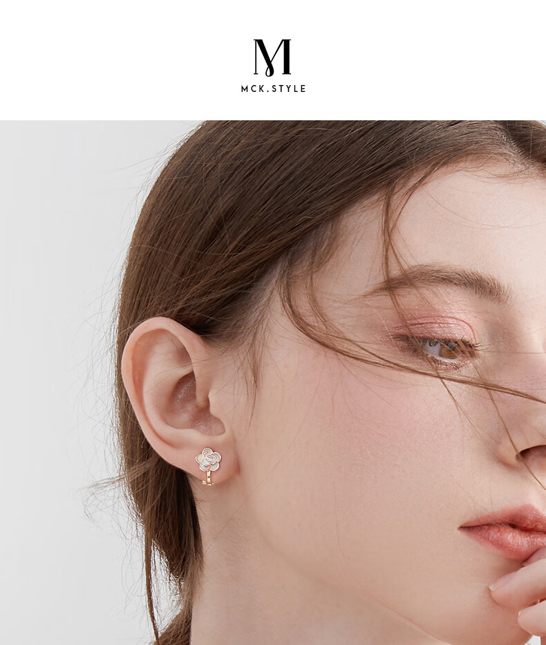 Mck camellia ear clip without piercing female clip-on earrings small fragrant style earrings girlfriend Chinese Valentine's Day gift