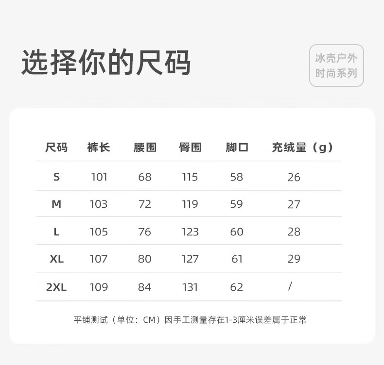 Outseam (cm) 99 cm 101.5 cm 104 cm 106.5 cm 109 cm