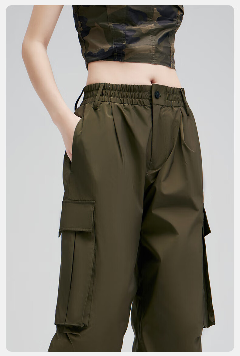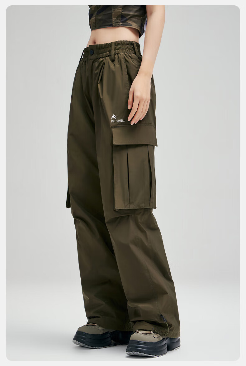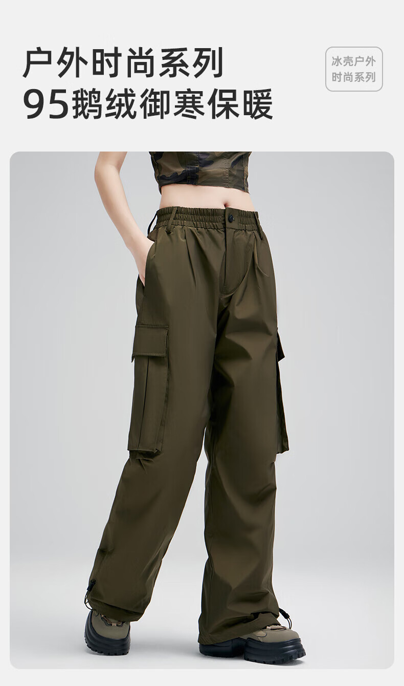 Yaya (YAYA) ice shell joint style down pants for women 2024 winter new drawstring goose down leg warmer high waist pants FL Green S