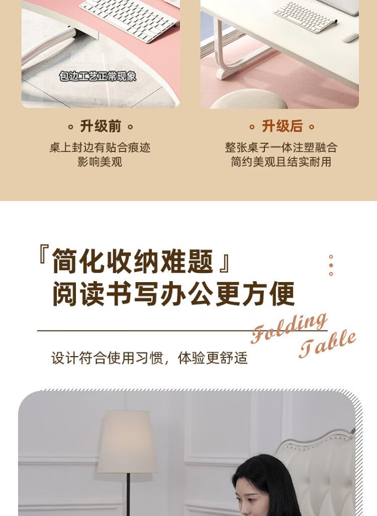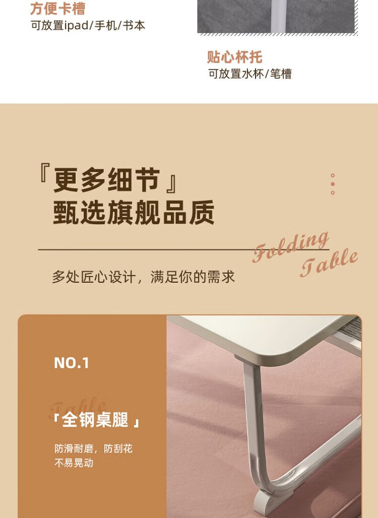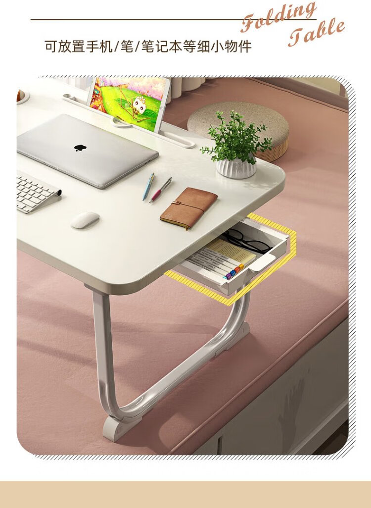 Nifeng bed folding computer table notebook bedroom dining desk study lazy bay window office writing tablet small table tea white length 70*width 48*height 32CM flat style