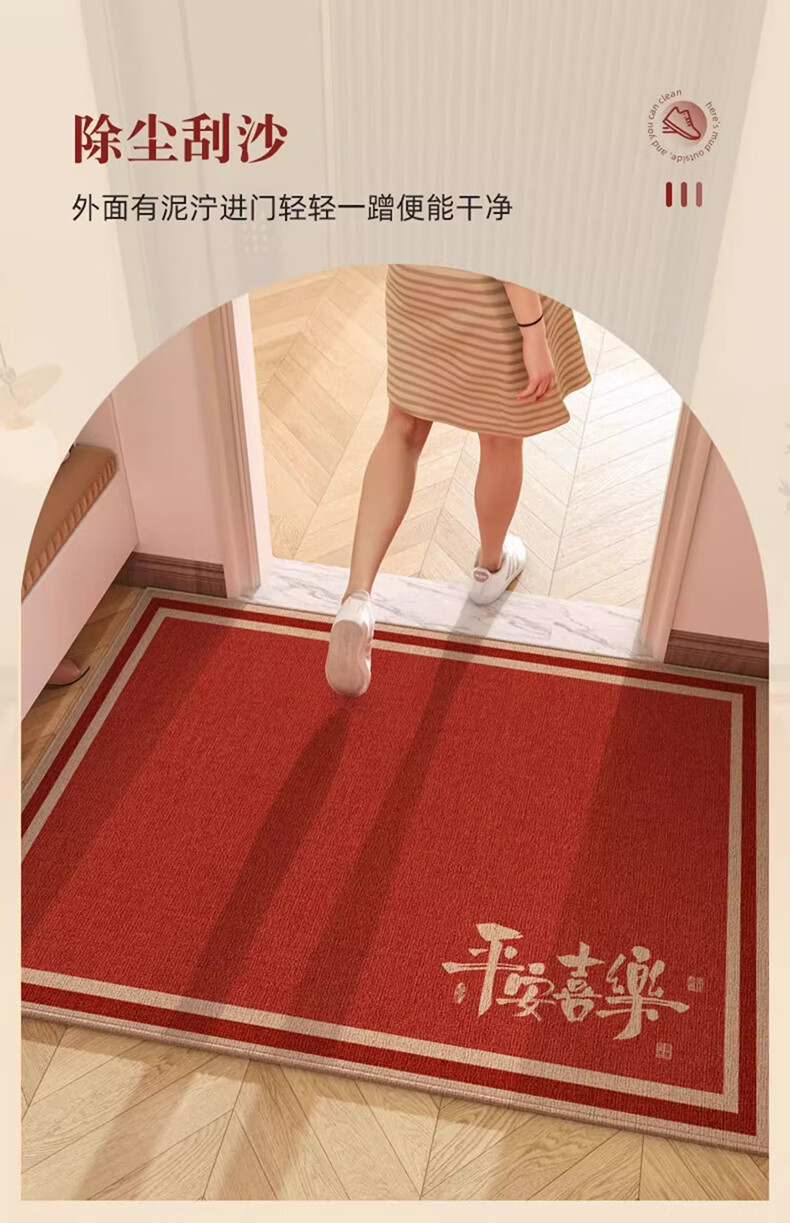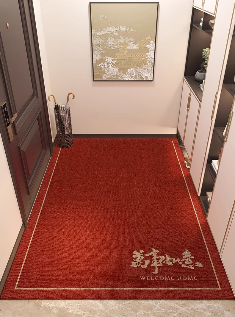 New Year's entrance door mat red high-end sense home festive entrance door mat non-slip wear-resistant entrance carpet All the best-14038 80cm side * 120cm door
