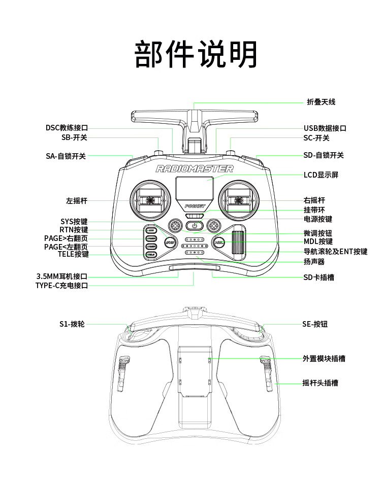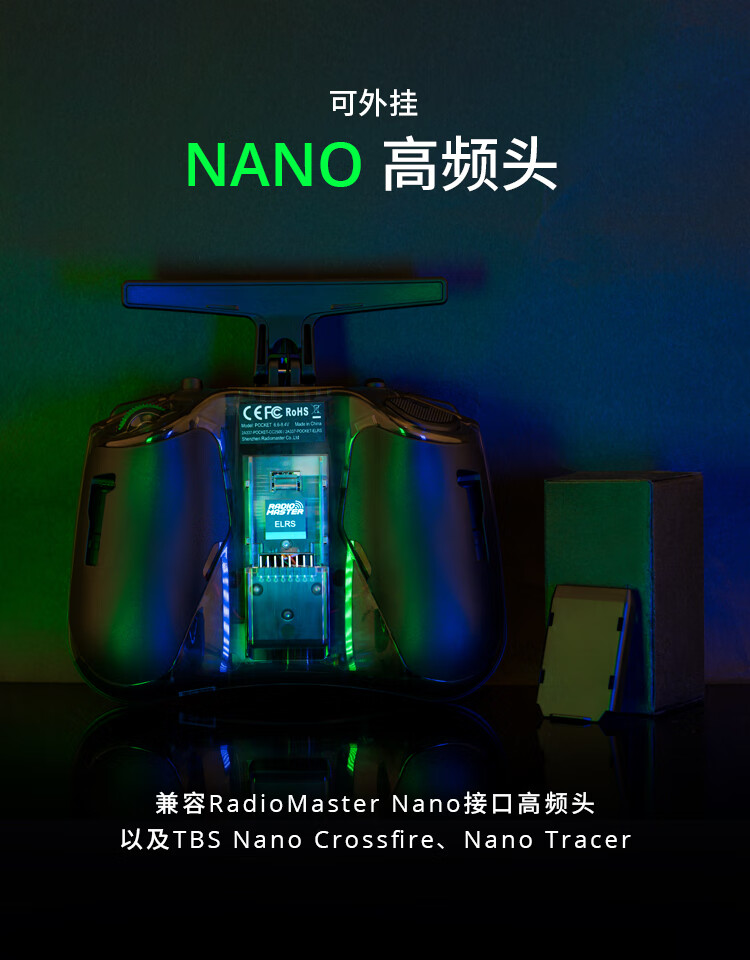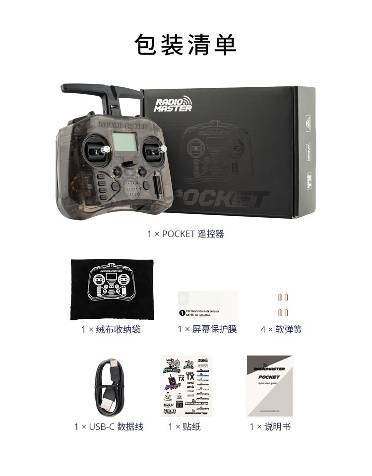 Radiomaster Pocket remote control traversing machine ELRS model aircraft FPV simulation handle remote control CC2500 ELRS version with Bluetooth, transparent color standard, left hand oil