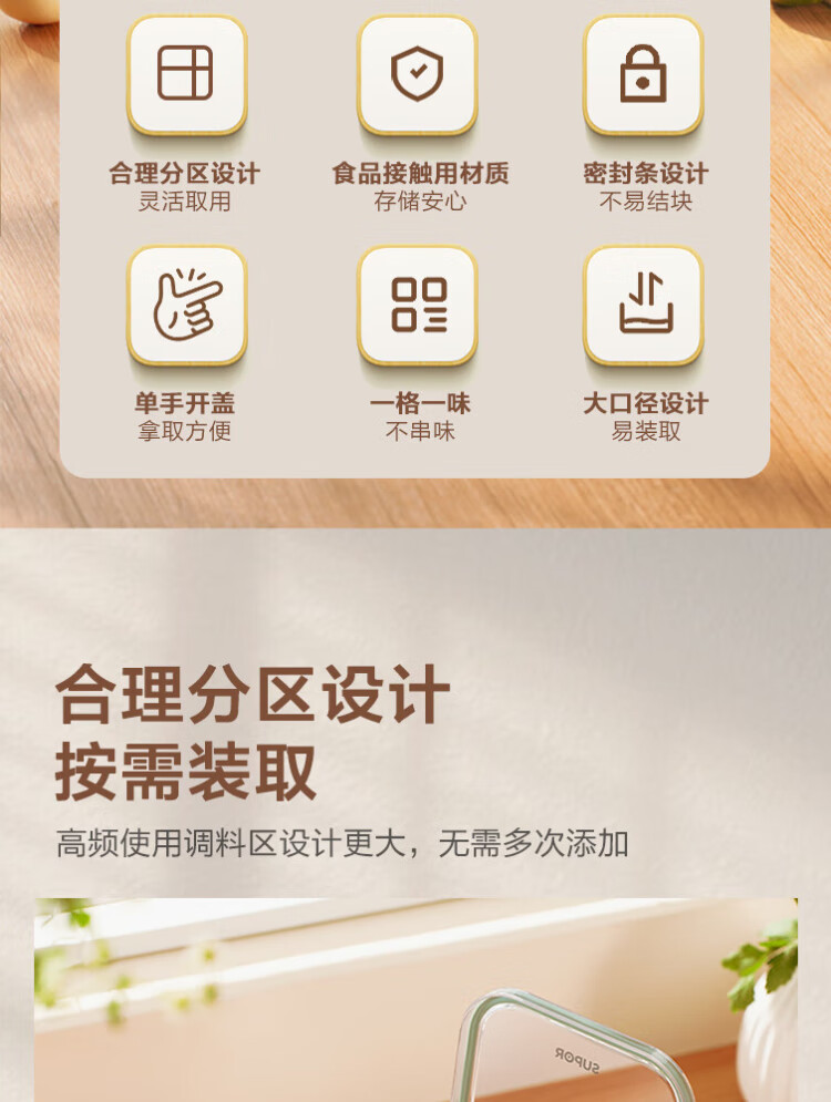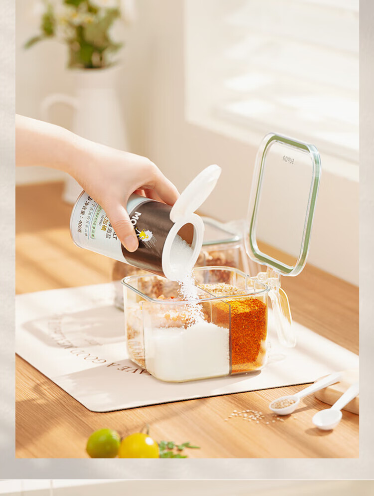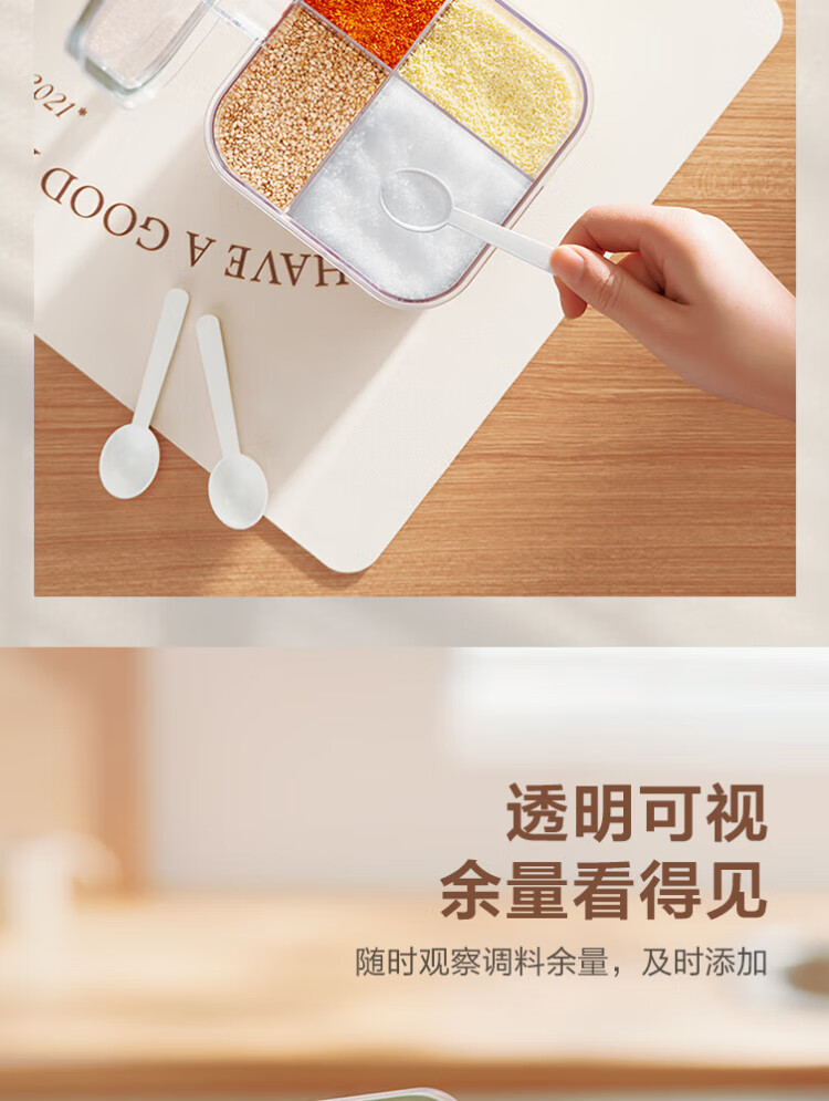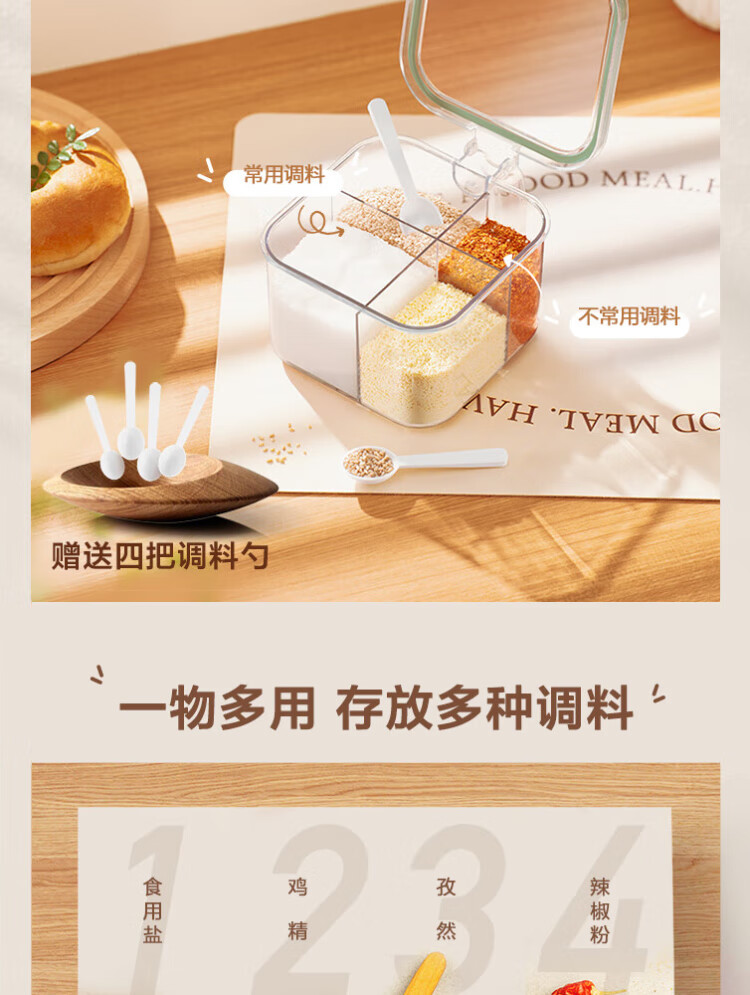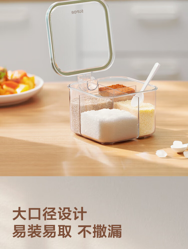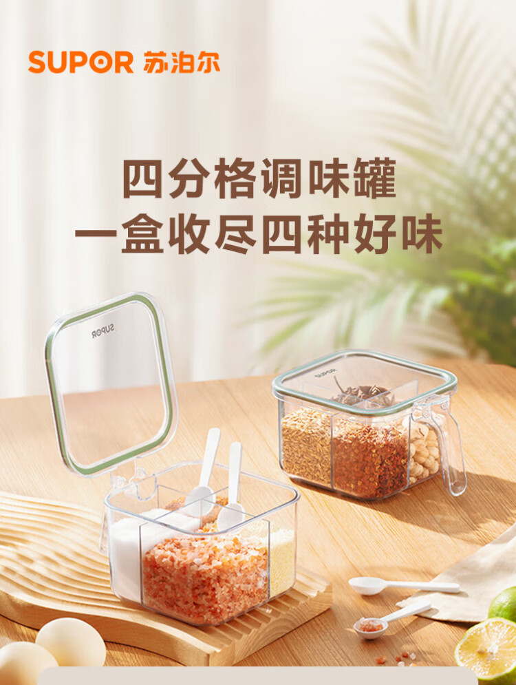 Supor seasoning jar with spoon four-compartment seasoning box kitchen salt jar moisture-proof KGF95BW10