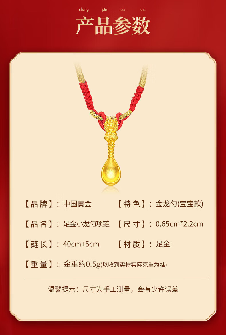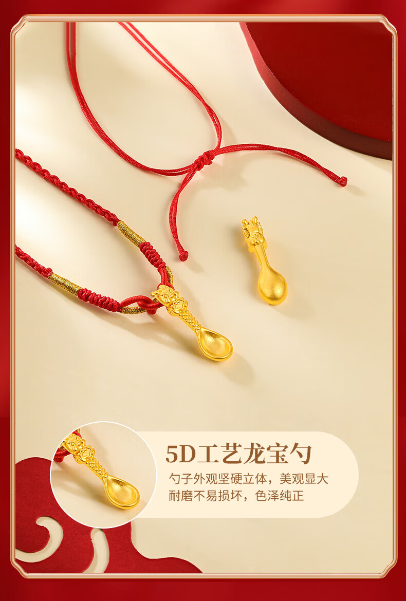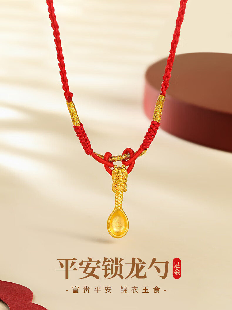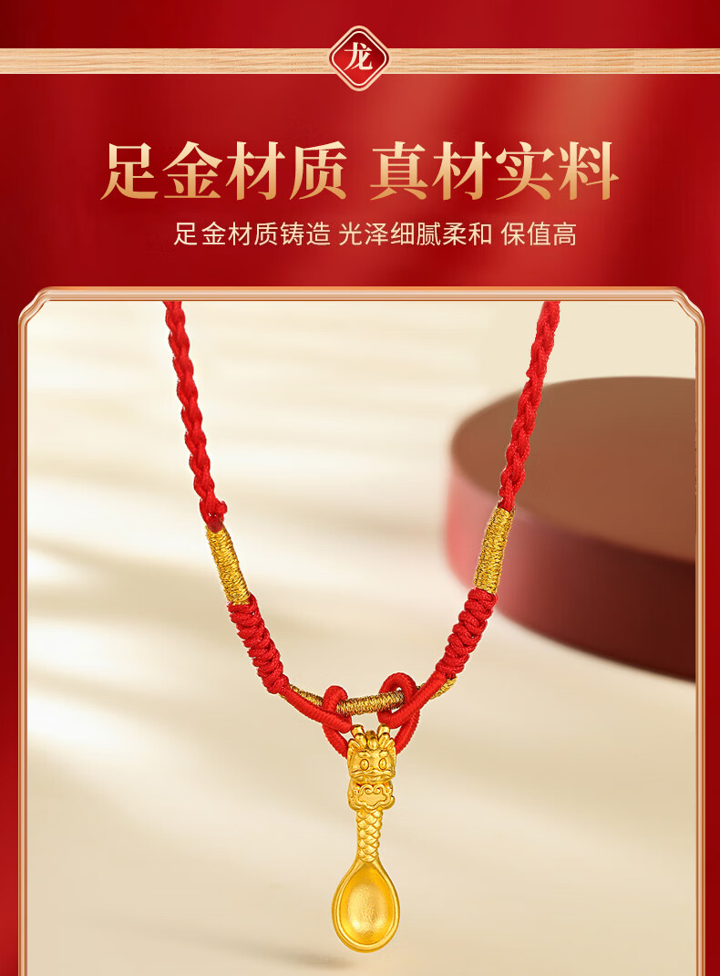 CHINA GOLD Baby Gold Necklace Pure Gold Spoon Pendant Birthday Gift for Newborn Baby One-year-old Meeting Gift Red String Jewelry Jingsuda Pure Gold Little Dragon Spoon Necklace