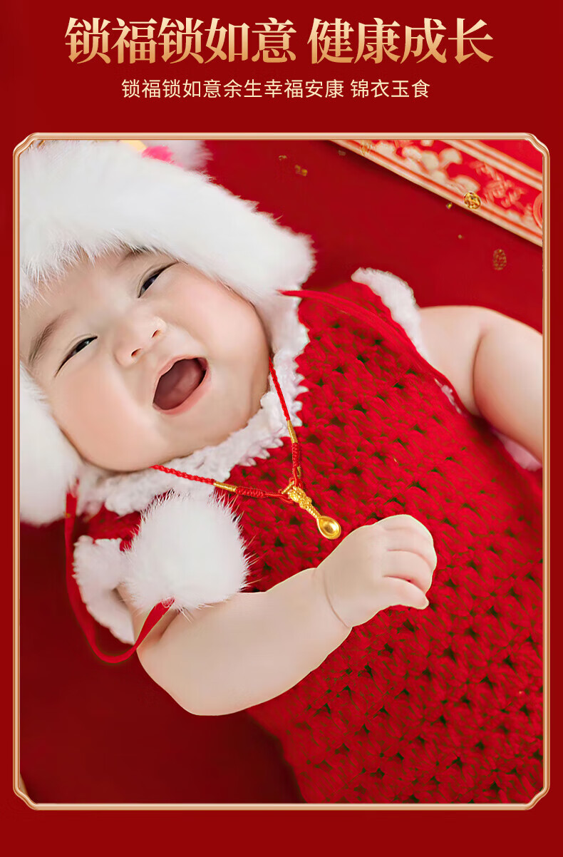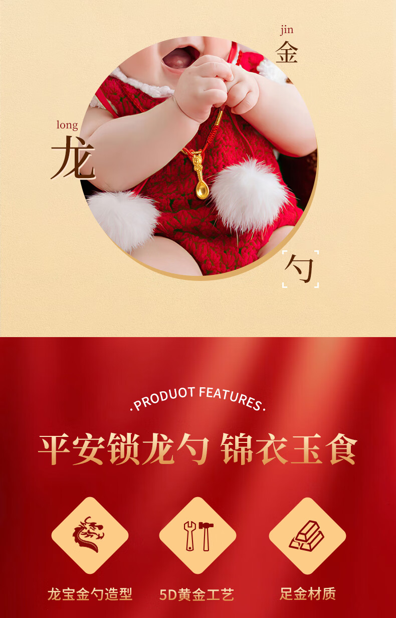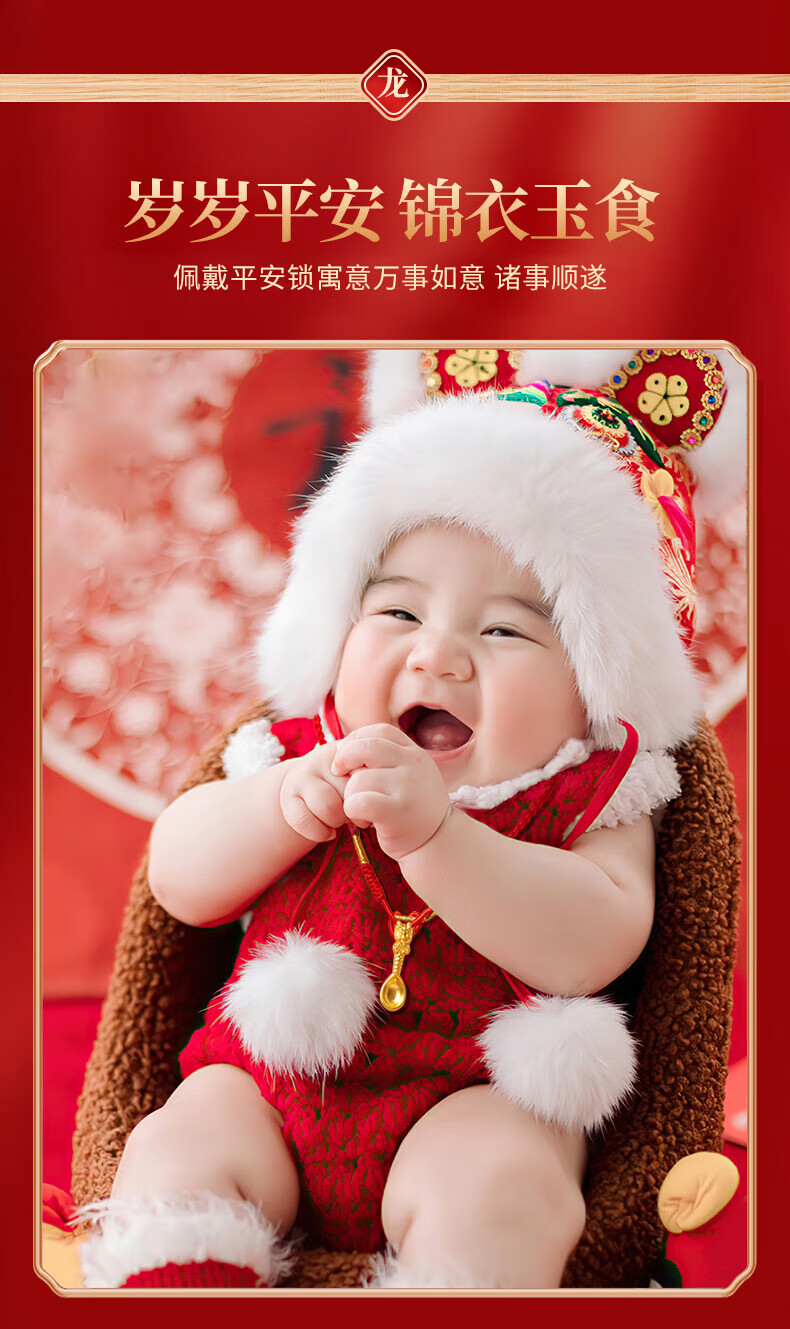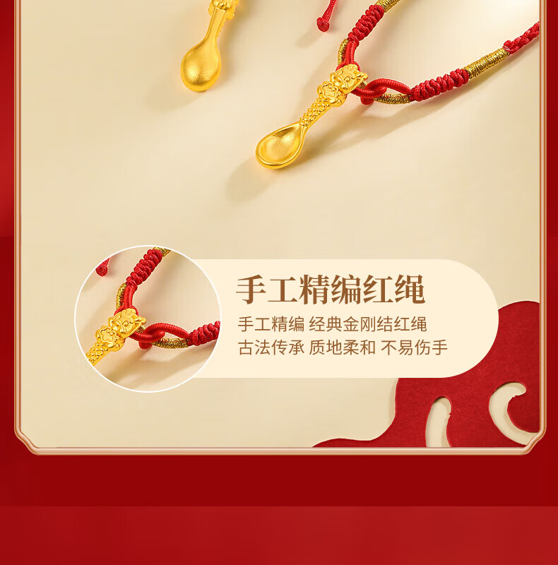 CHINA GOLD Baby Gold Necklace Pure Gold Spoon Pendant Birthday Gift for Newborn Baby One-year-old Meeting Gift Red String Jewelry Jingsuda Pure Gold Little Dragon Spoon Necklace