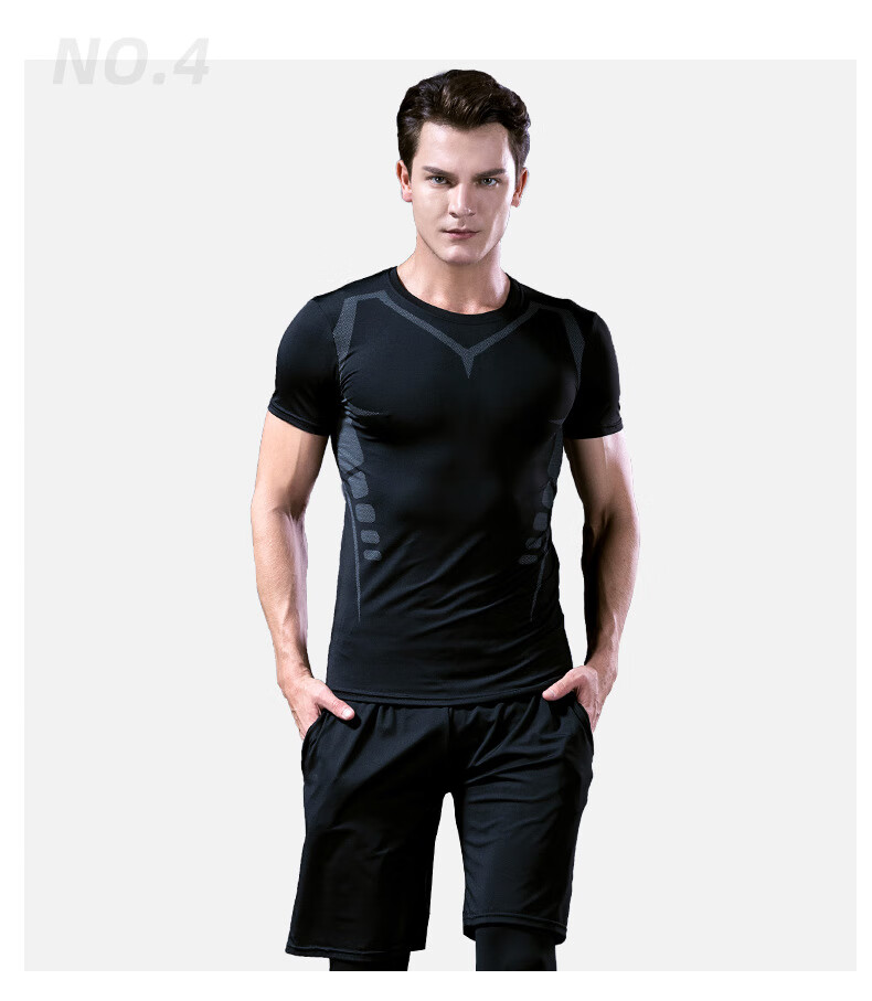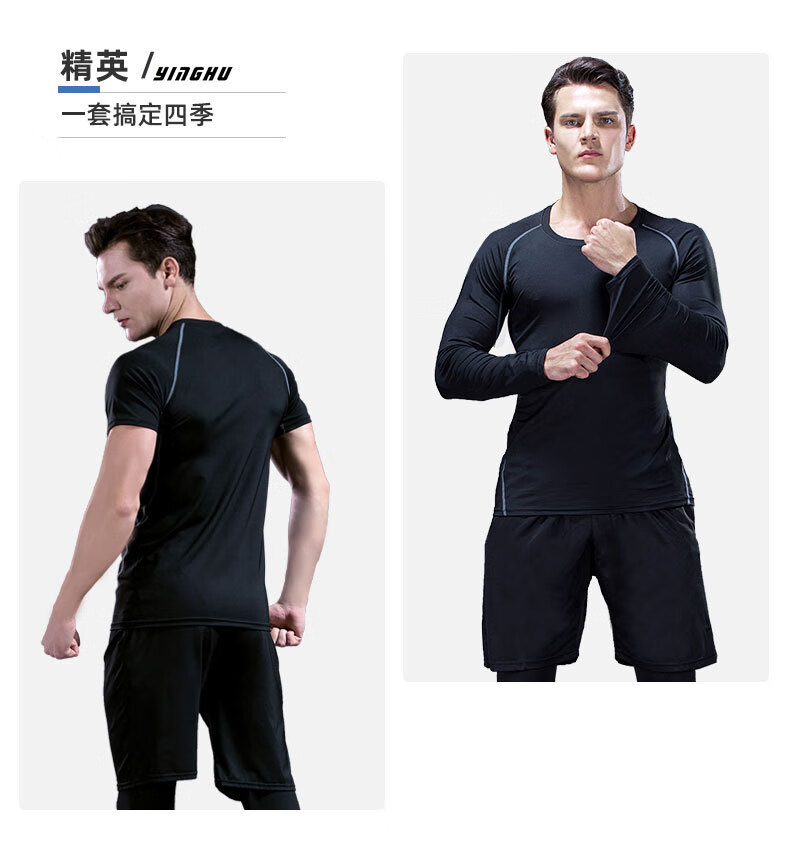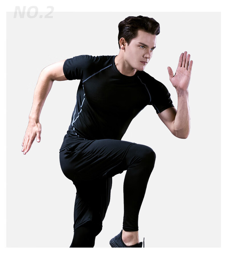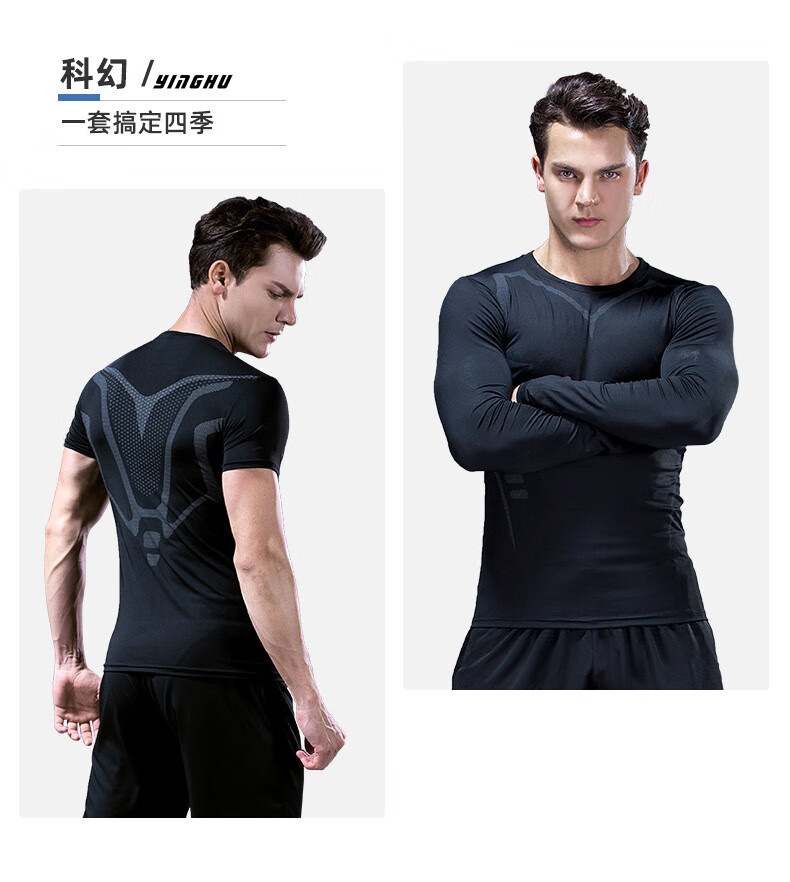 NIUKAILE sports suit men's running gym clothes spring quick-drying clothes tight long-sleeved morning running high elastic training cycling clothes ice silk/running, a set of worry-free sci-fi version 5 XL