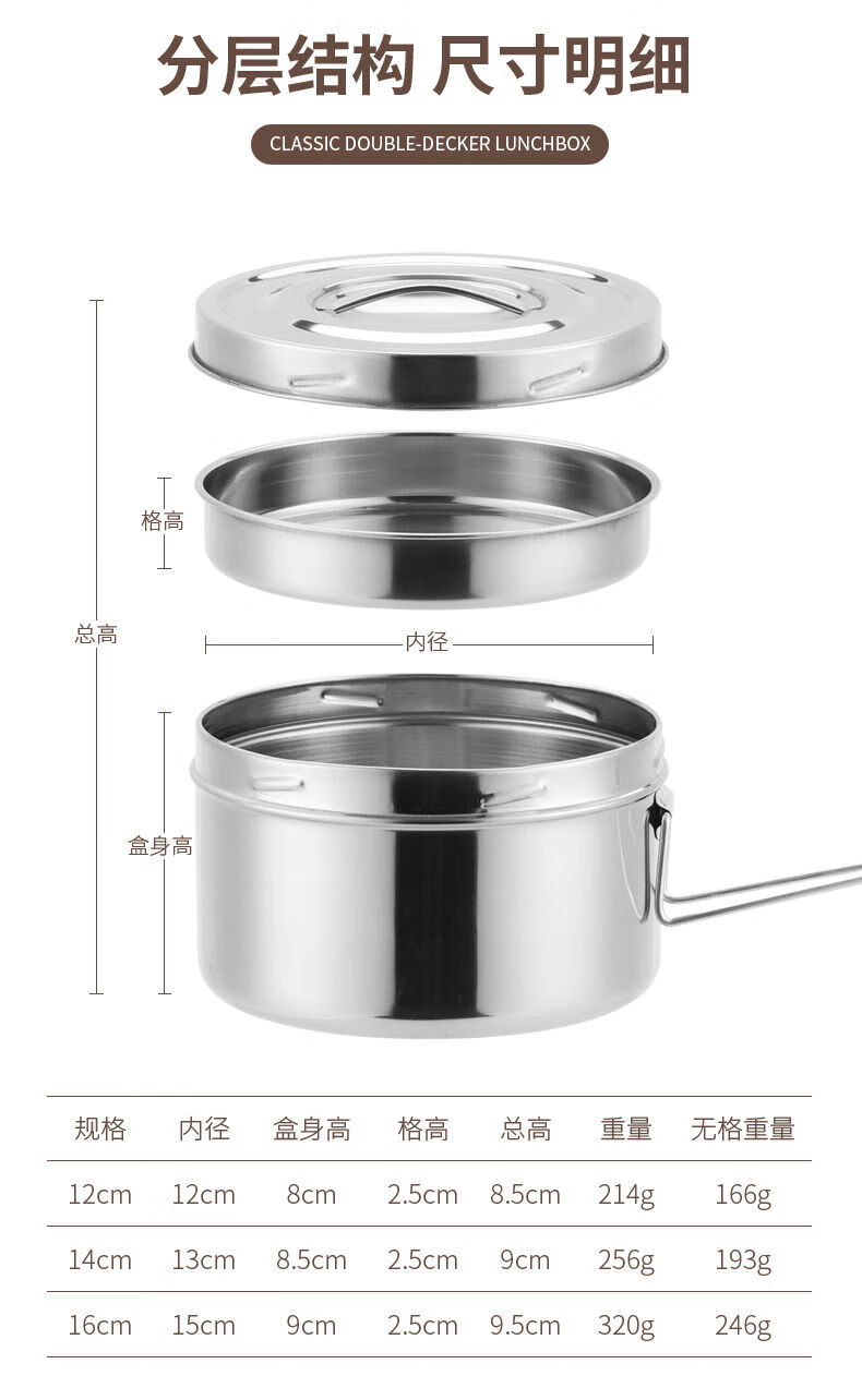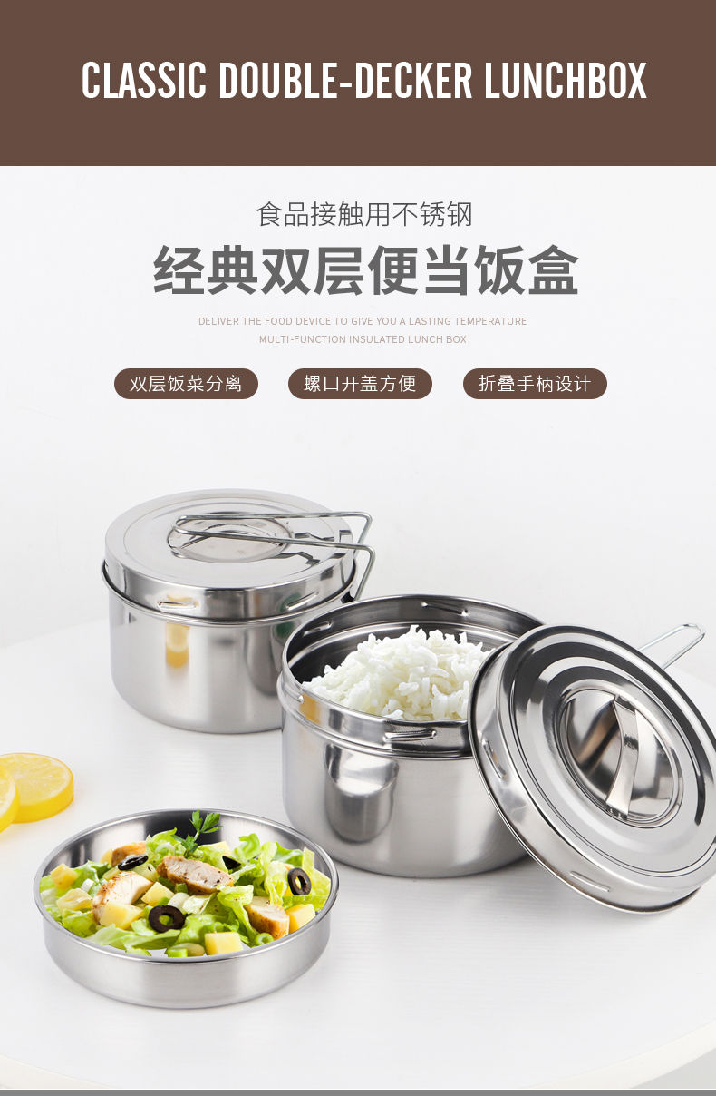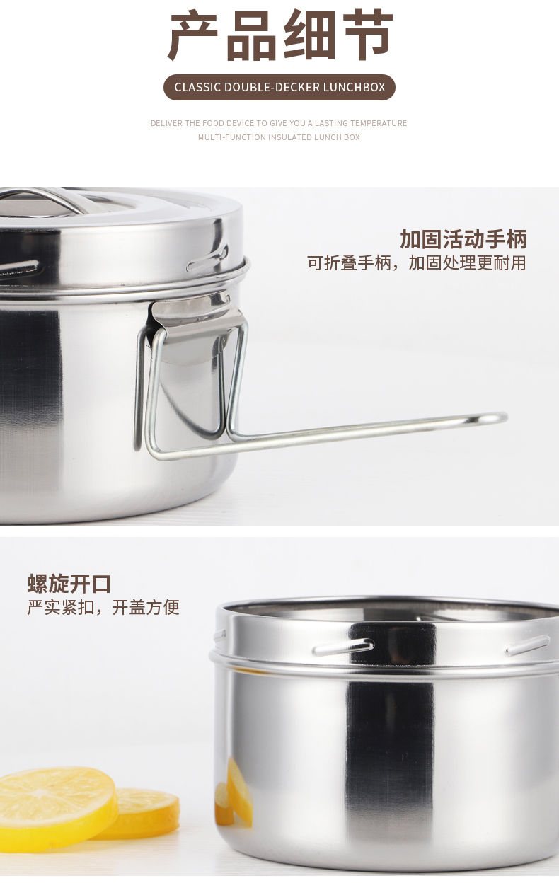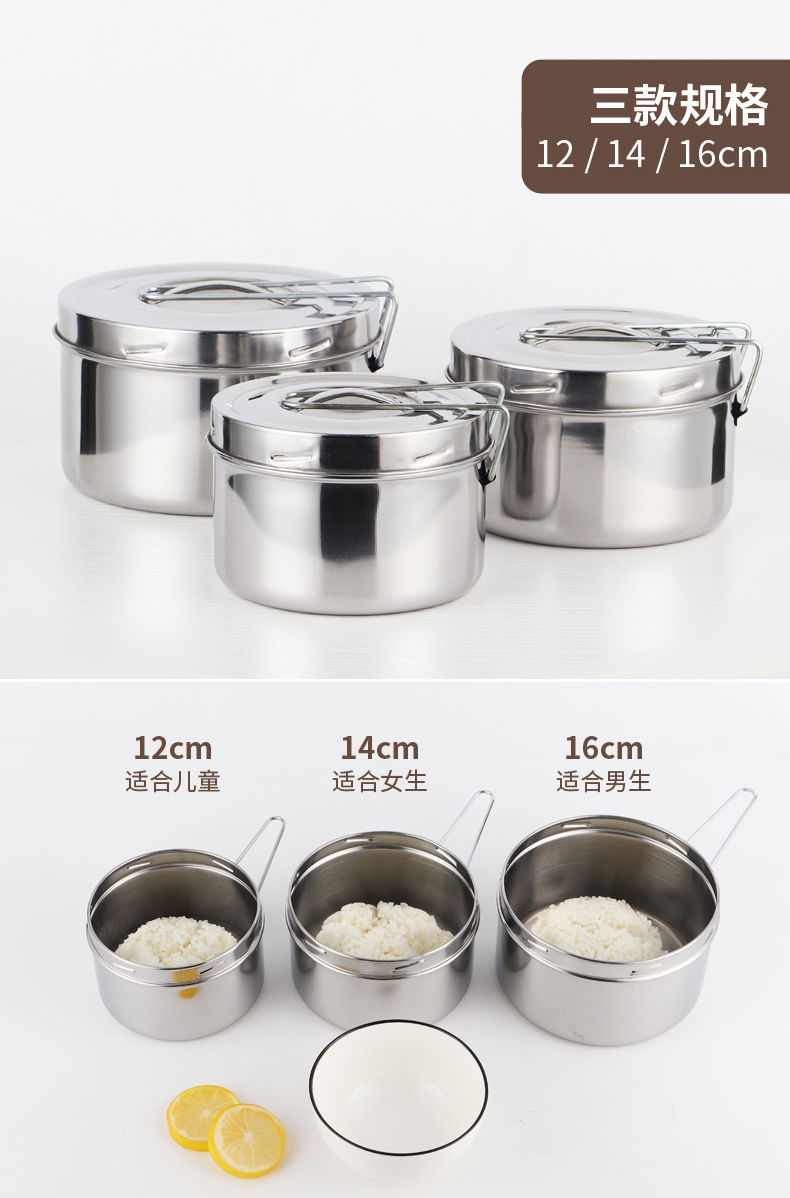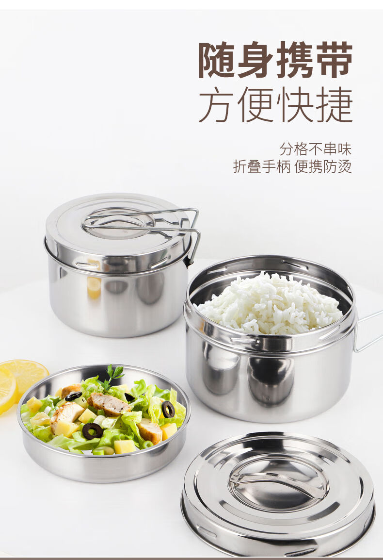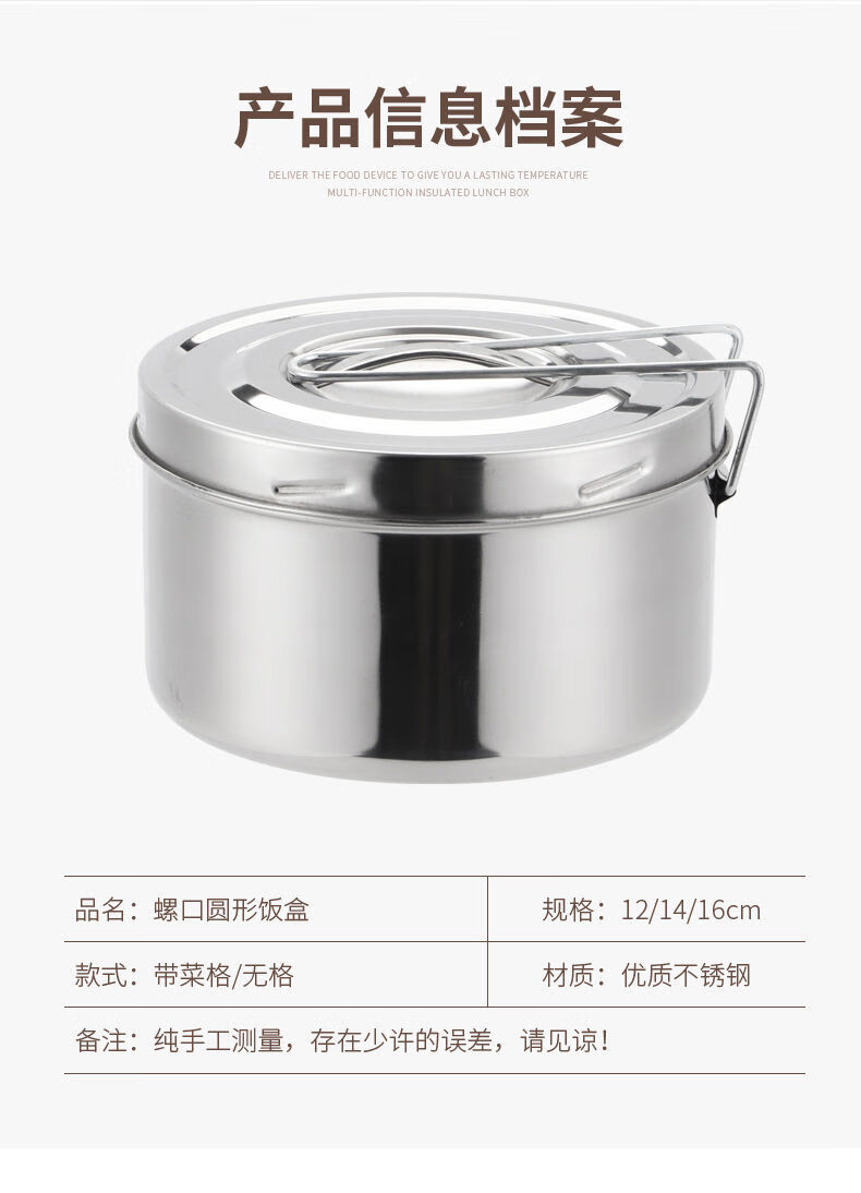 Mengyier thickened screw round stainless steel insulated lunch box 304 student lunch box instant noodle bowl with compartments 12 cm with vegetables