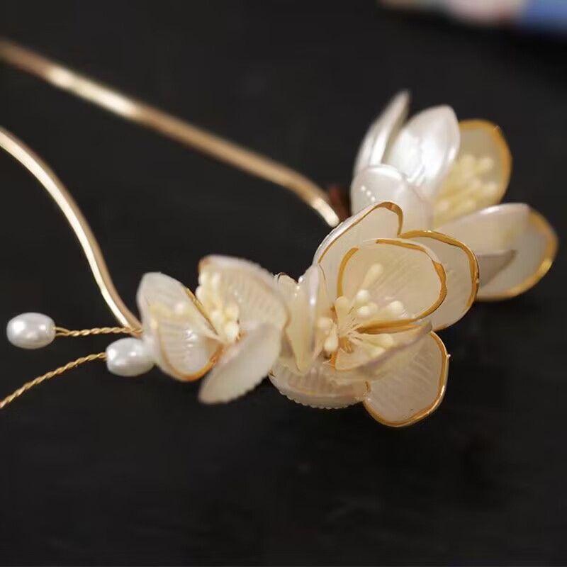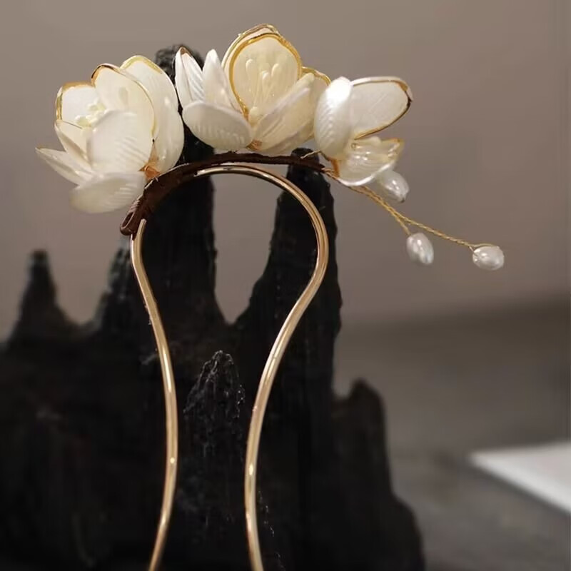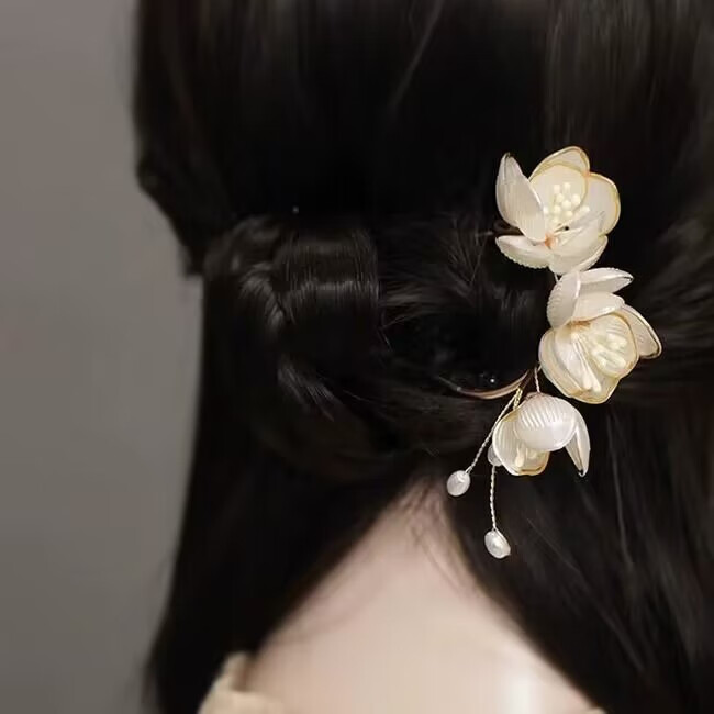 DING FEI new Chinese style U-shaped hairpin hairpin women's flower versatile new hairpin for the back of the head New Chinese style U-shaped hairpin porcelain white pearl style B00-103