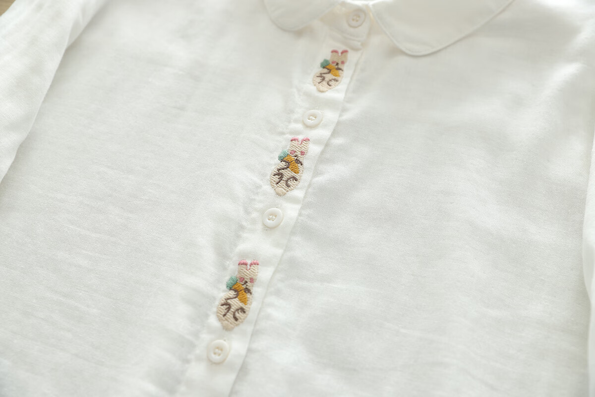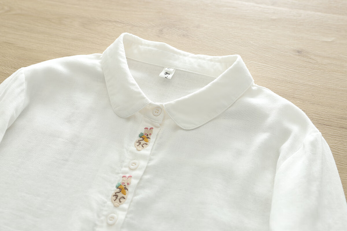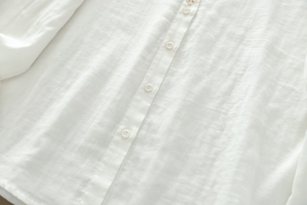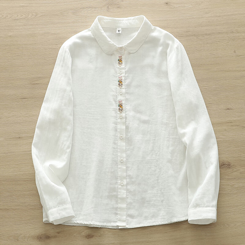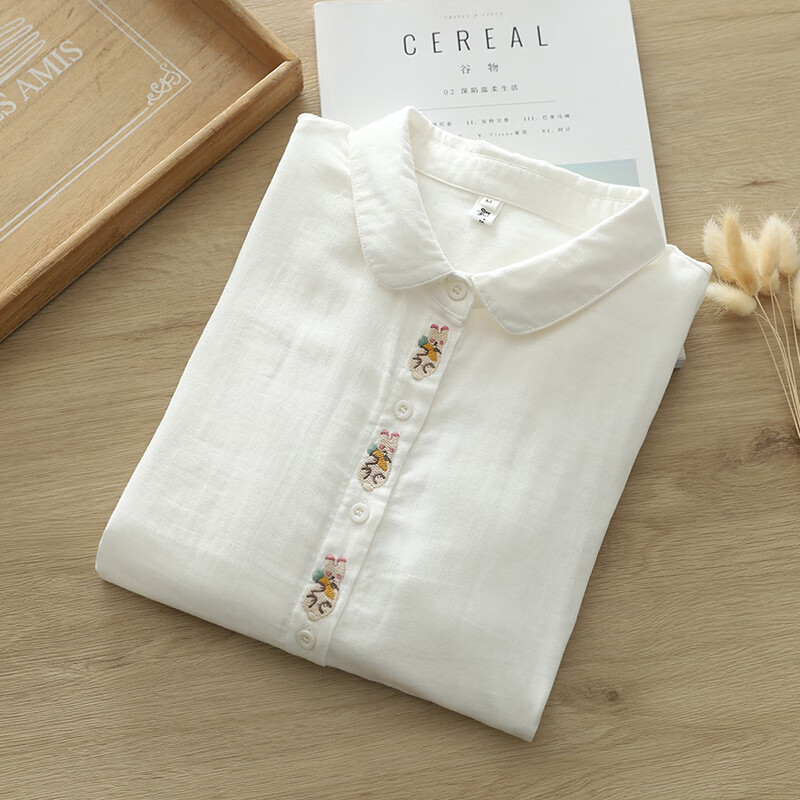 Nuanqiao cotton double-layer cotton gauze white shirt women's long-sleeved spring and autumn loose French embroidery small fresh and sweet cotton shirt white M (115-130Jin Jin equals 0.5 kg)