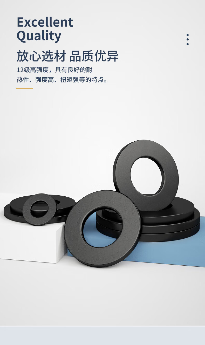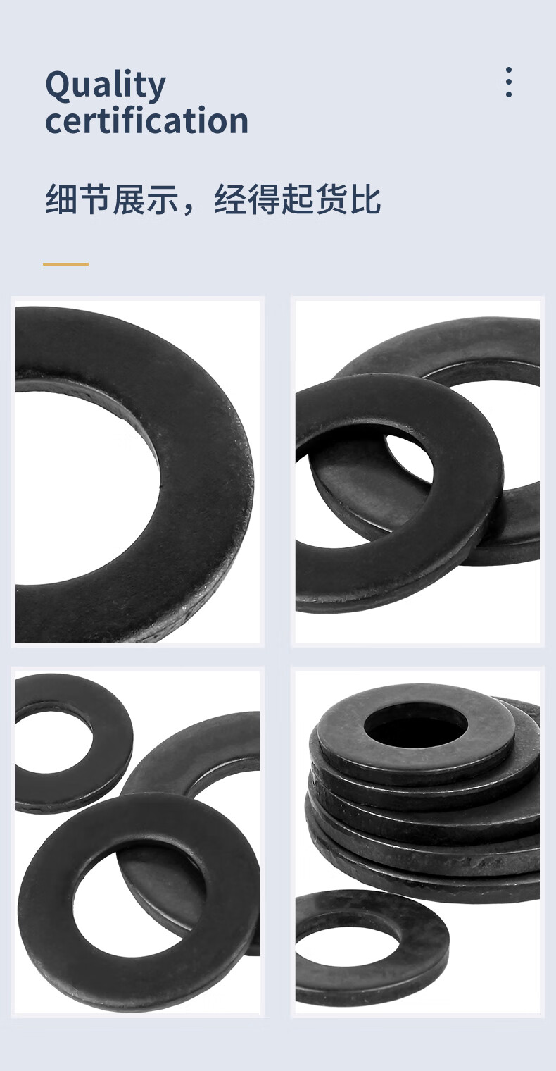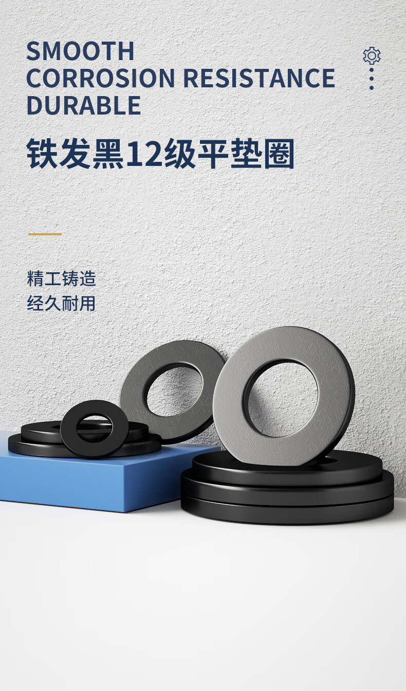 Guwanji black grade 12 flat gasket metal screw flat washer thickened and thin meson round national standard fastener collection 12.9 grade M8x16x1.6 (50 pieces)