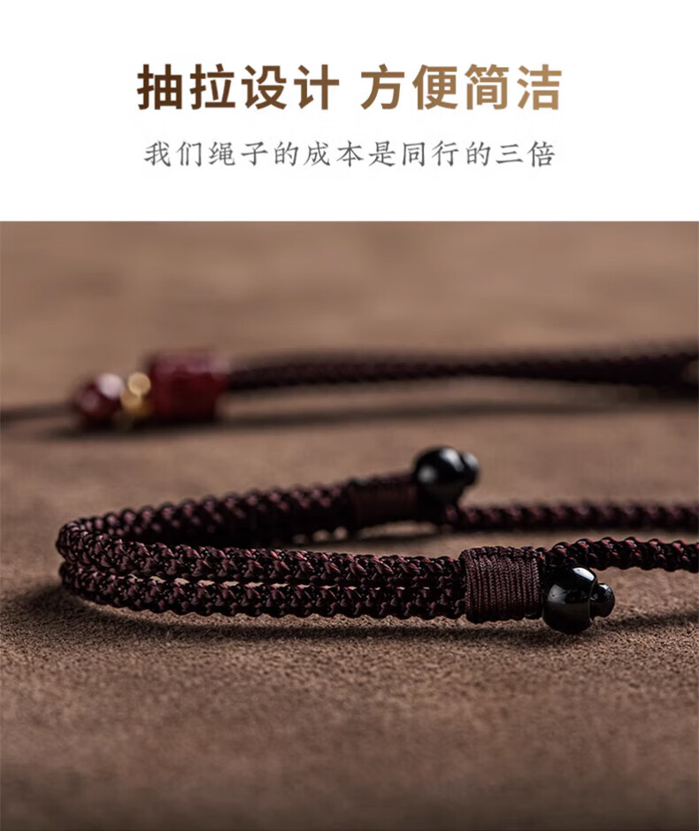 Crystal cinnabar pendant hanging rope necklace rope cord for men and women high-end adjustable jade pendant Buddha brand neck braided lanyard D03 cinnabar black rope without pendant