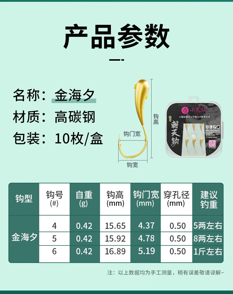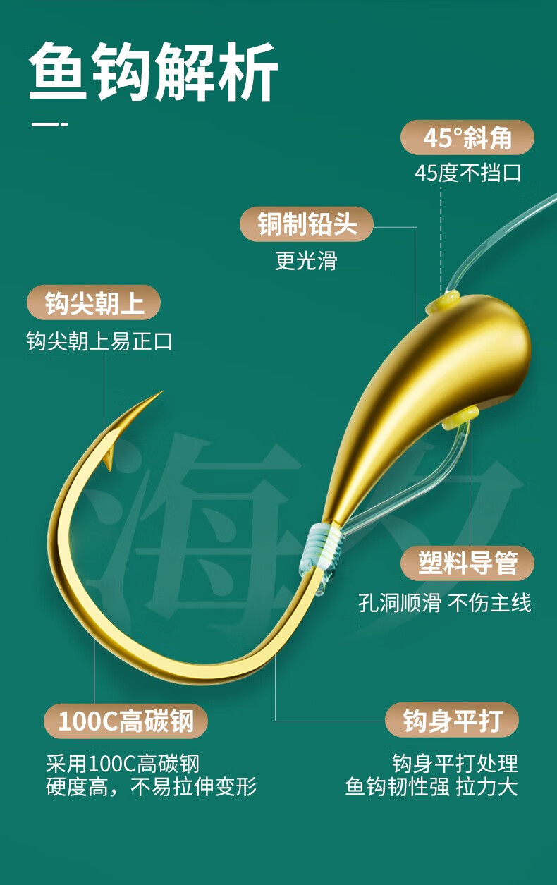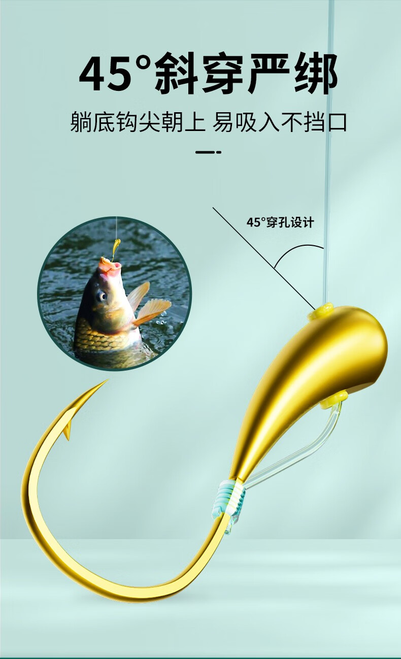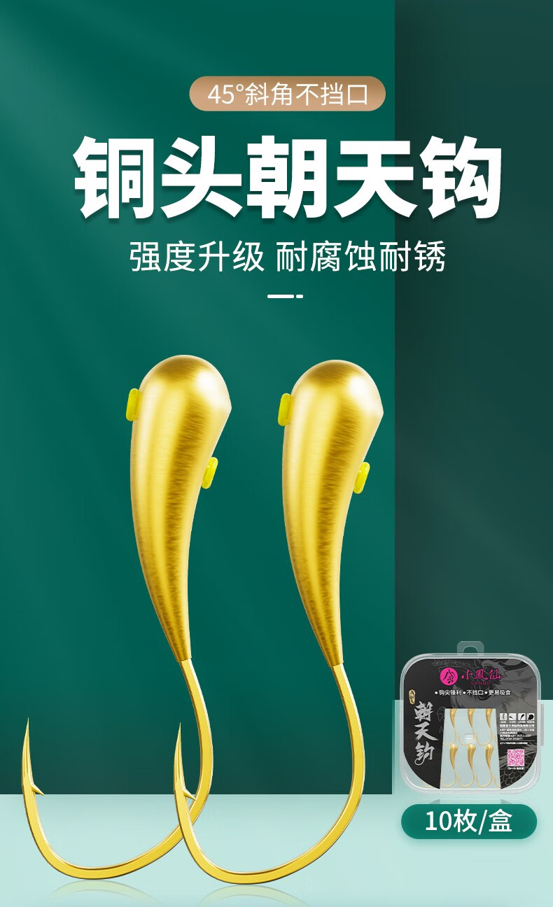 Xiaofengxian Jin Haixi Wolf Teeth Barbed Fishing Hook Copper Head Upturned Hook Bulk Crucian Carp and Carp Fishing Supplies Lead Head Hook Jin Haixi Barbed Hook No. 5# Self-weight 0.36g