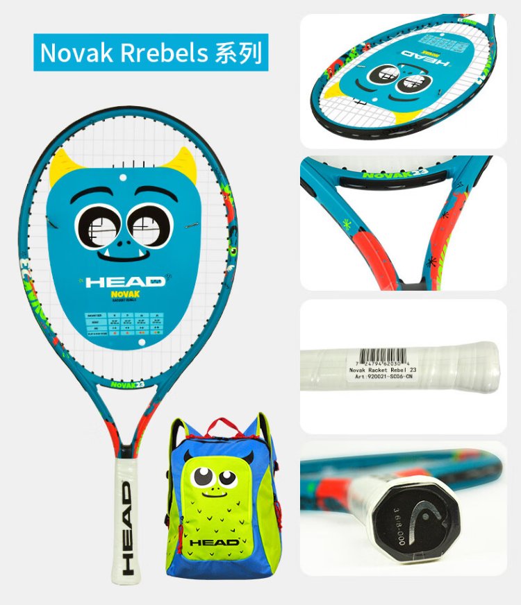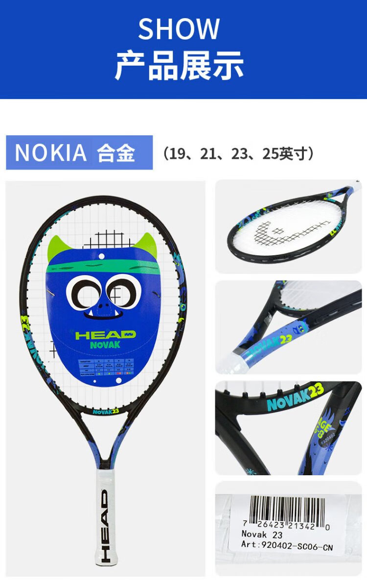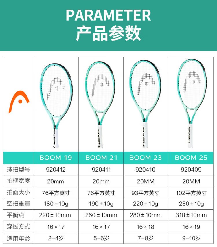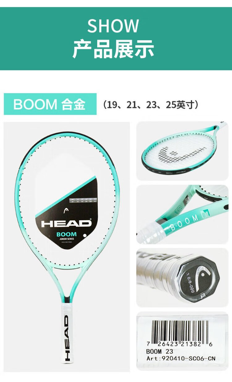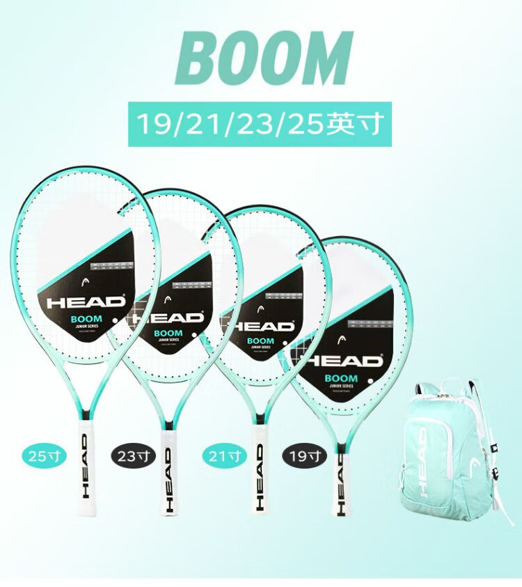 HEAD Children's Tennis Racket Kindergarten Primary School Students Teenagers Boys and Girls 19/21/23/25 Inch Tennis Racquet Single Training BOOM 25 Inch Lake Blue 230g 920409