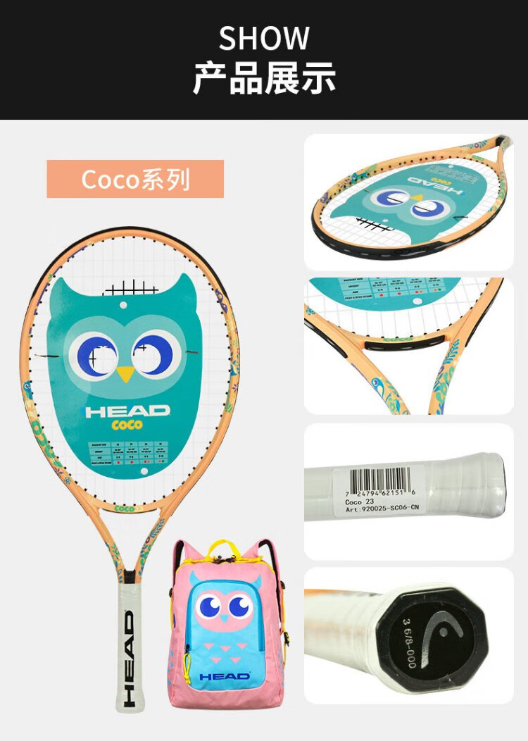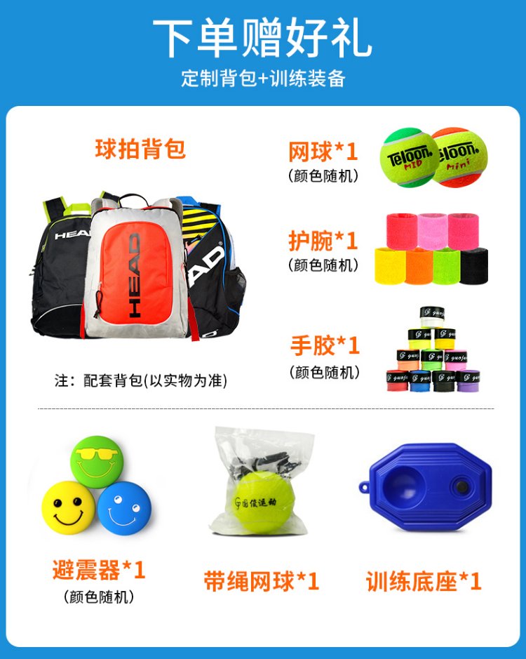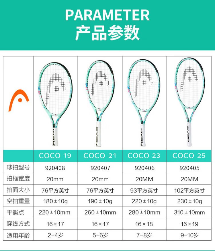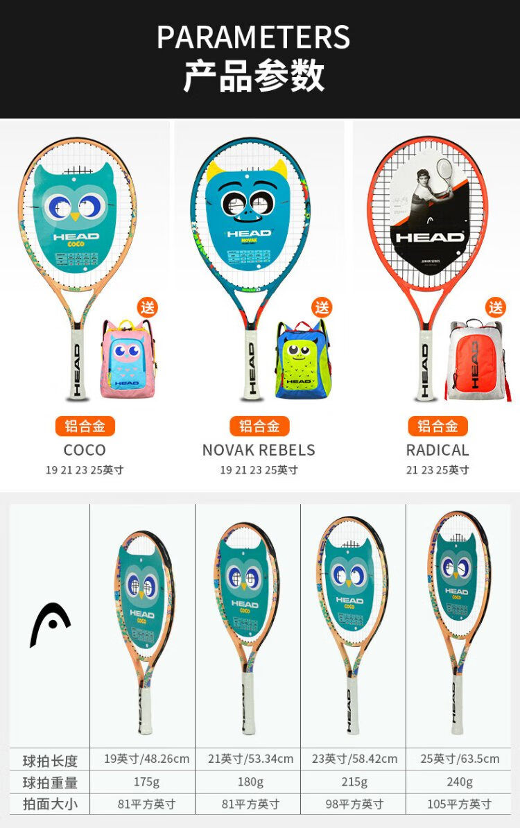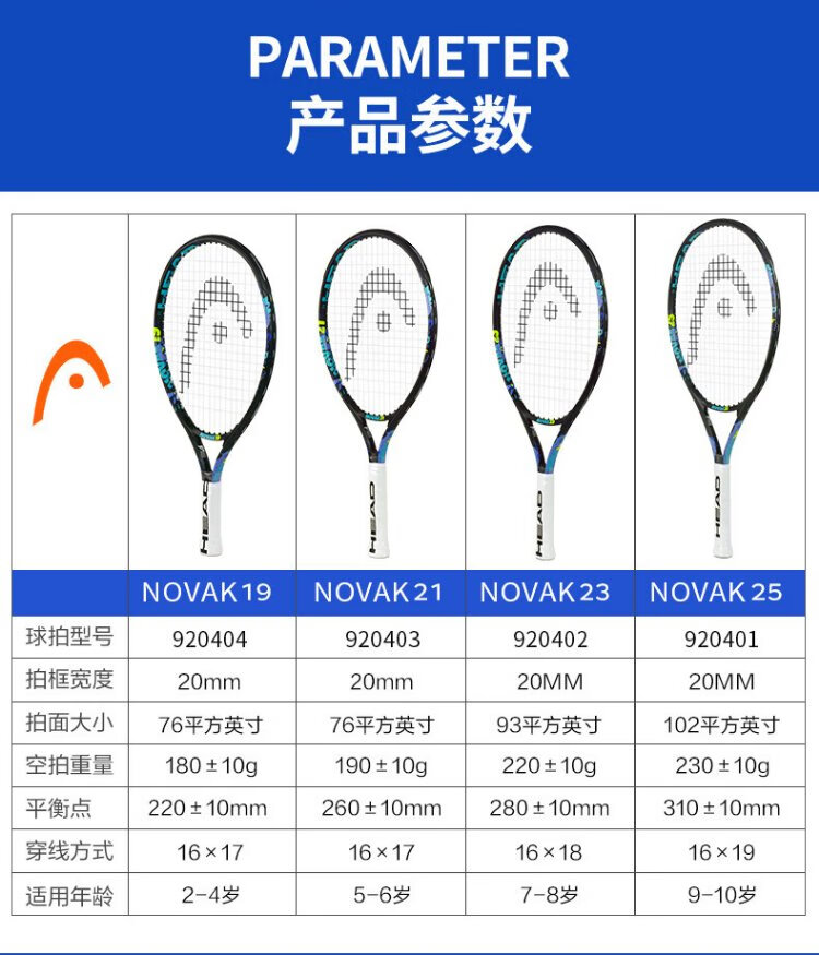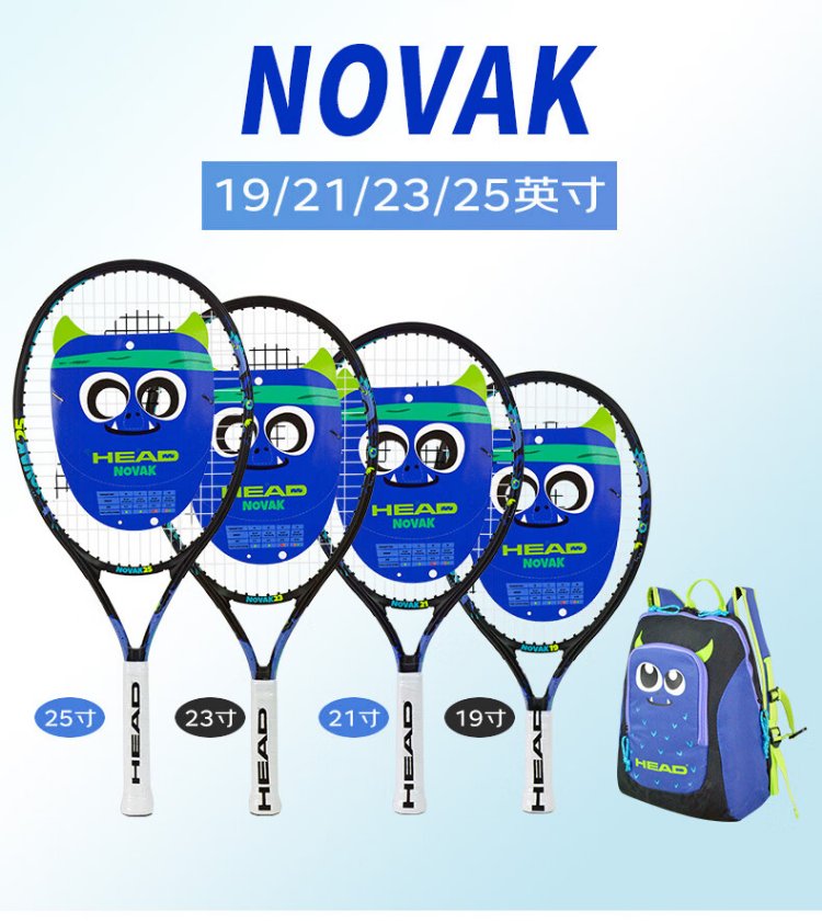 HEAD Children's Tennis Racket Kindergarten Primary School Students Teenagers Boys and Girls 19/21/23/25 Inch Tennis Racquet Single Training BOOM 25 Inch Lake Blue 230g 920409