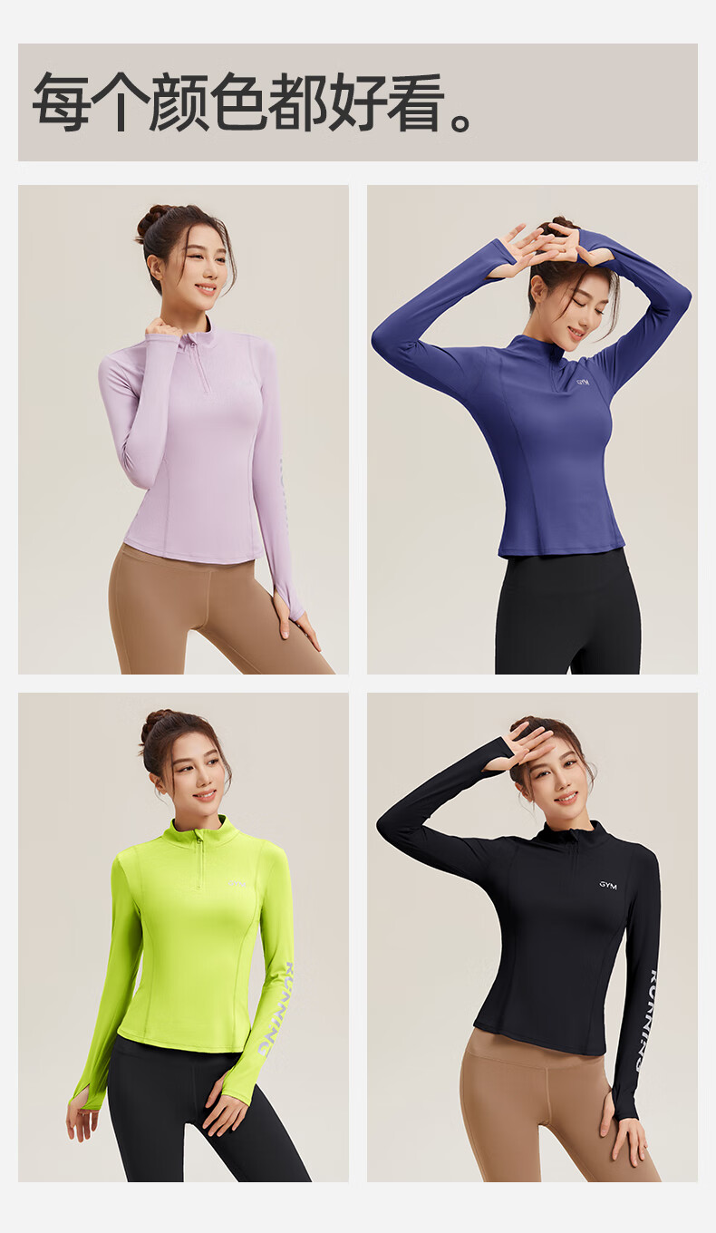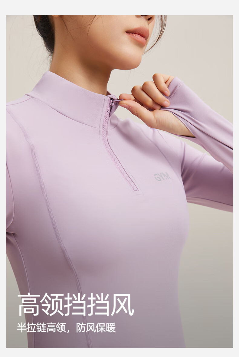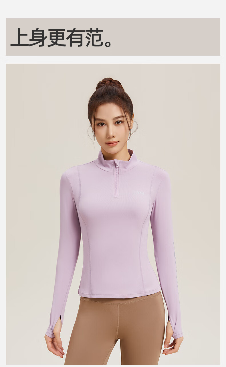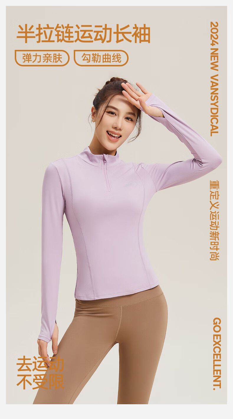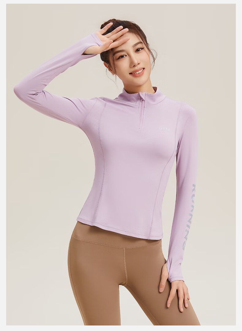 Vansydical Yoga Wear Jacket Women's Elastic Half-Zip Running Tight Sports Top Pilates Training Fitness Wear Long Sleeve Mountain Purple L (Recommended 105-120 Jin Jin equals 0.5 kg)