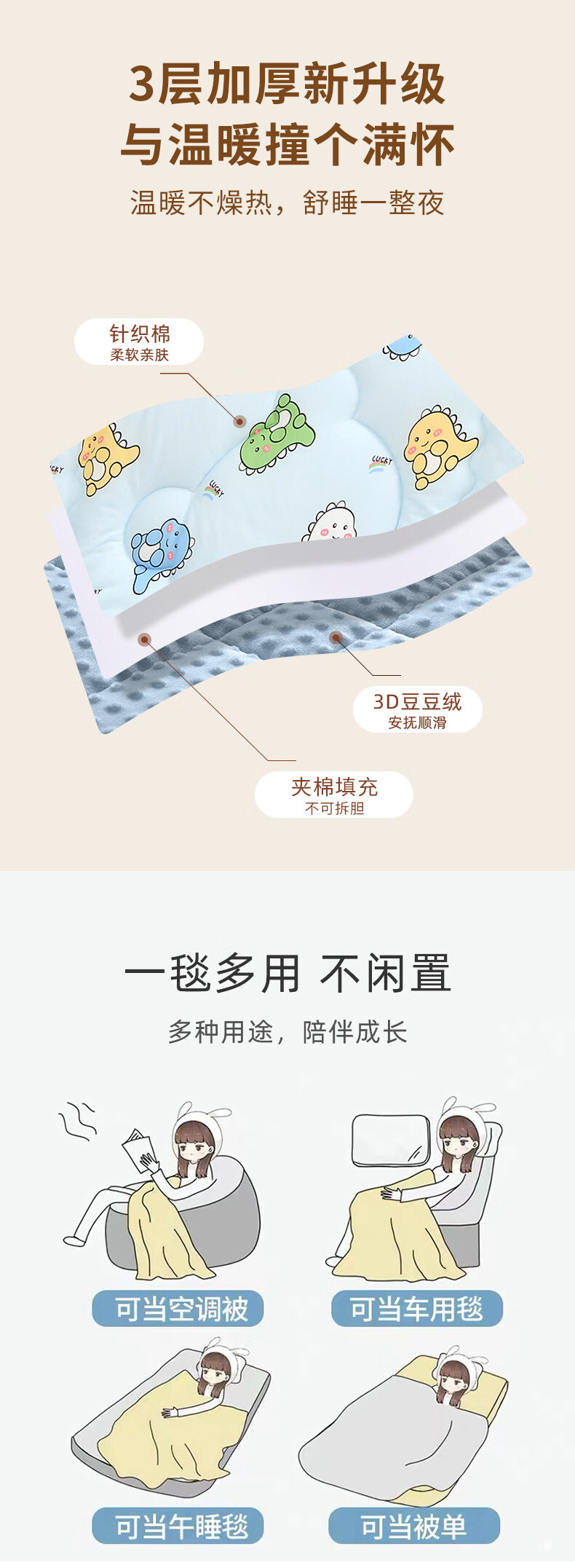 Acacia baby quilt autumn and winter baby blanket 3D beanie comfort baby blanket kindergarten small quilt beanie quilt strawberry bunny knitted cotton beanie 10-20 1.2-1.5 meters machine washable 1400g