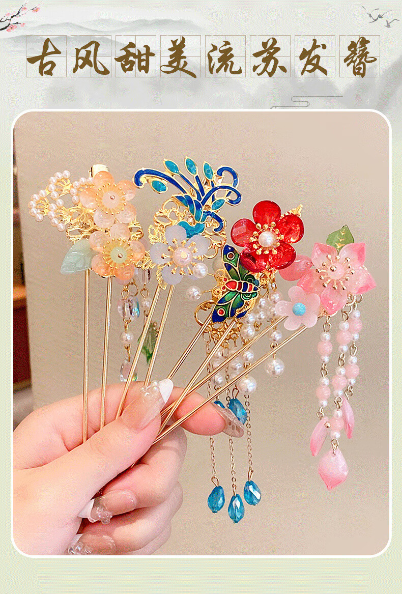Mrs win (Mrs win) ancient style Hanfu hairpin children's costume headwear Chinese style rocking tassel hairpin hair ornaments girls' hairpins Lianxin