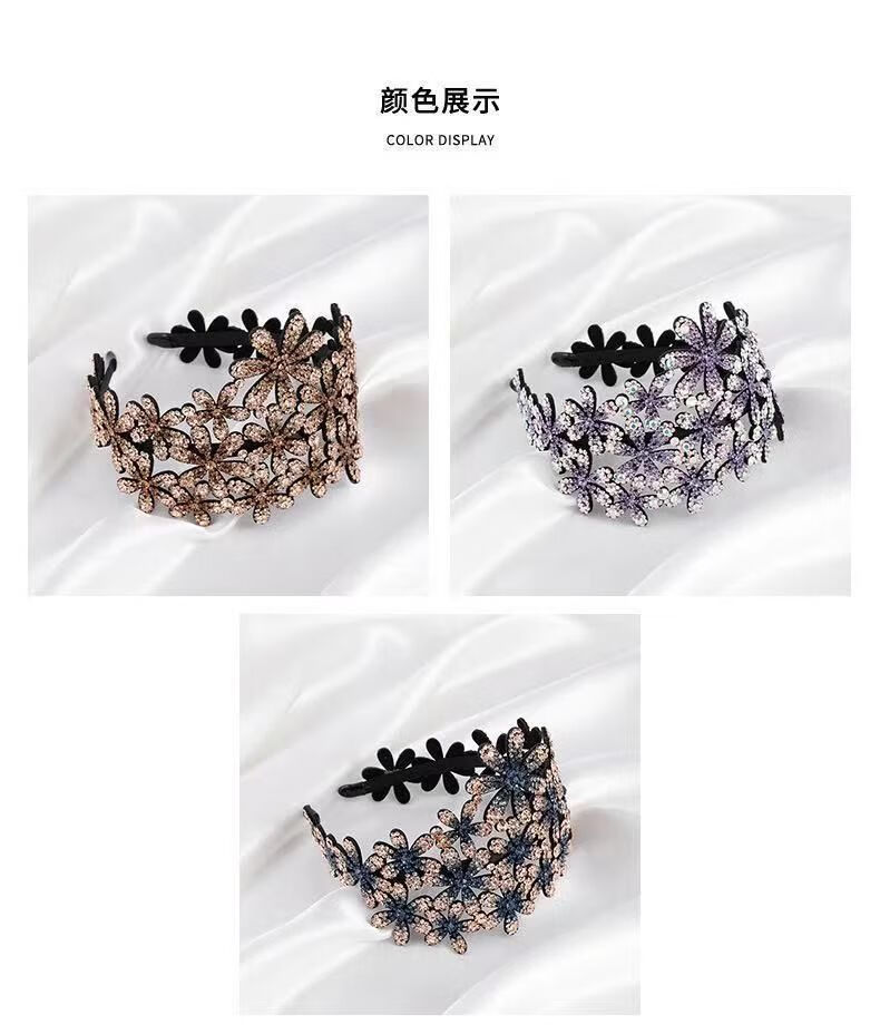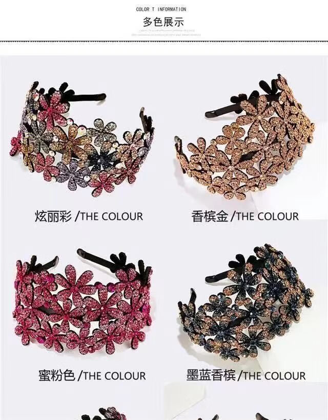 Mrs. Win (Mrs win) wide-brimmed flowers to cover white hair artifact, flower blossoms, rich and noble pressure hairpins, hairpins, rhinestone anti-slip headband, headband, headband, white hair cover - ink gray B05-104