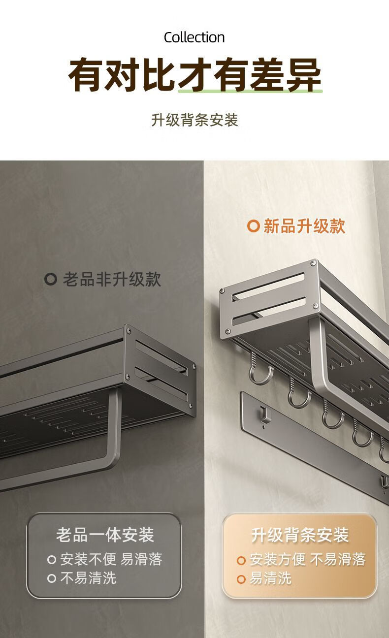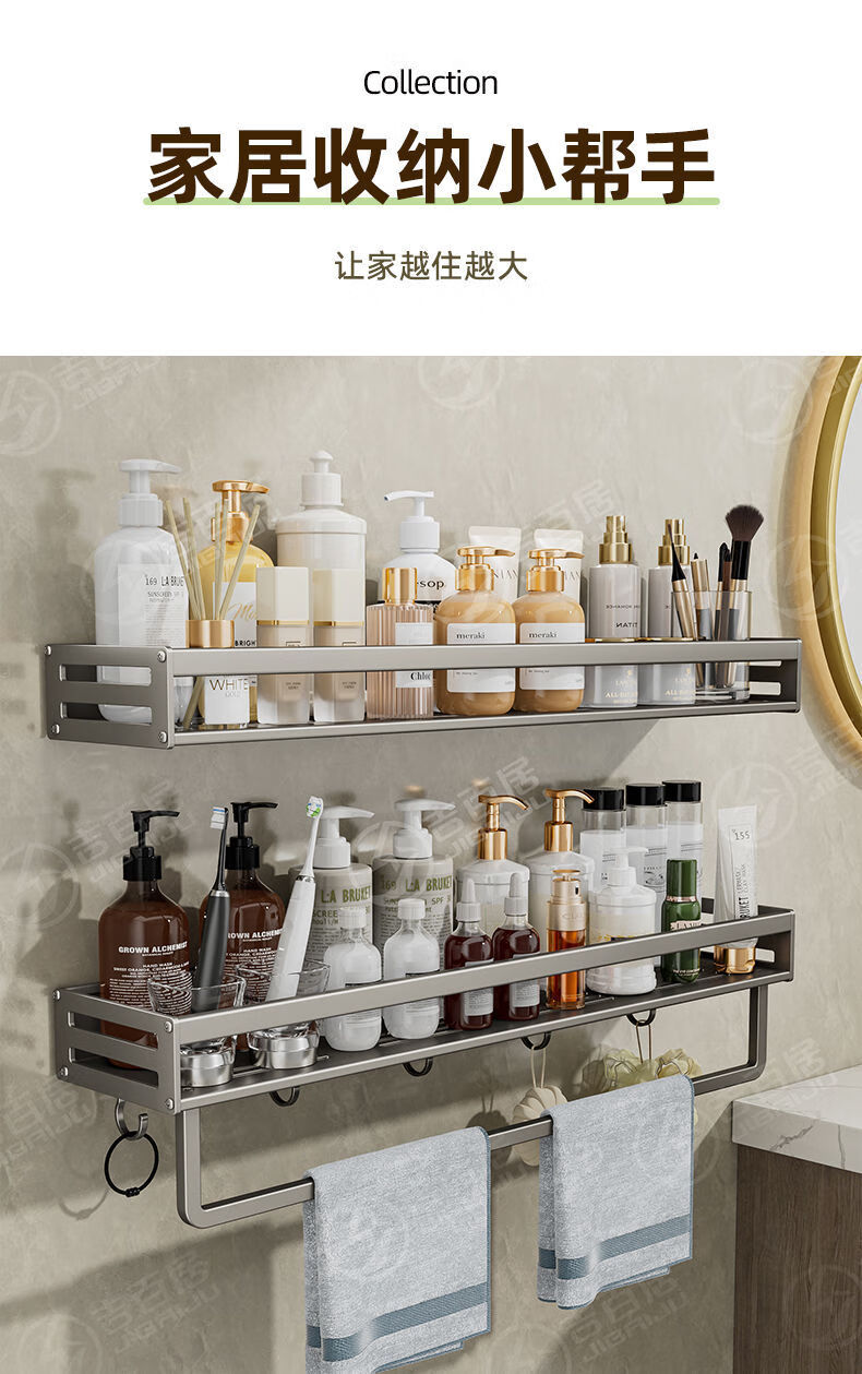 Henglan Removable Bathroom Toilet Storage Rack No Punching Wall-mounted Toilet Toilet Washbasin Wall Storage Rack - Light Luxury Gray New Baffle + Back Strip Removal #Thick Single Layer 40 Standard Style