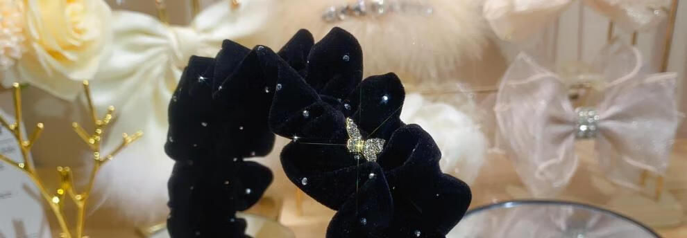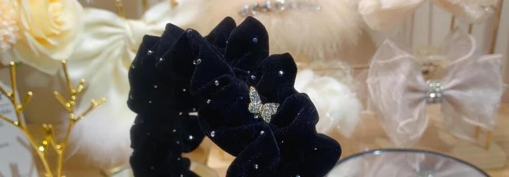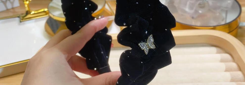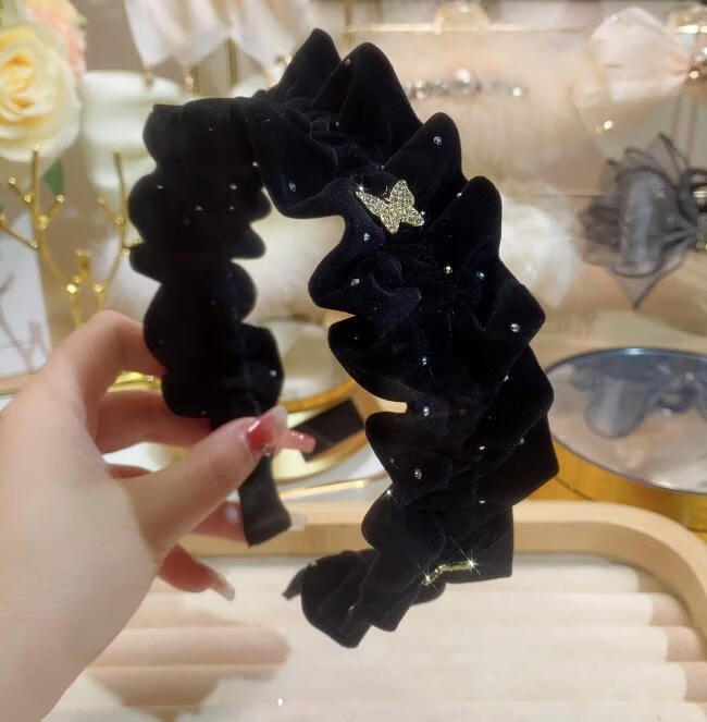 Mrs win velvet rhinestone star dot hairband for women 2025 new wide edge high head pressure hair wide headband face wash hairpin black one butterfly diamond headband A14-303