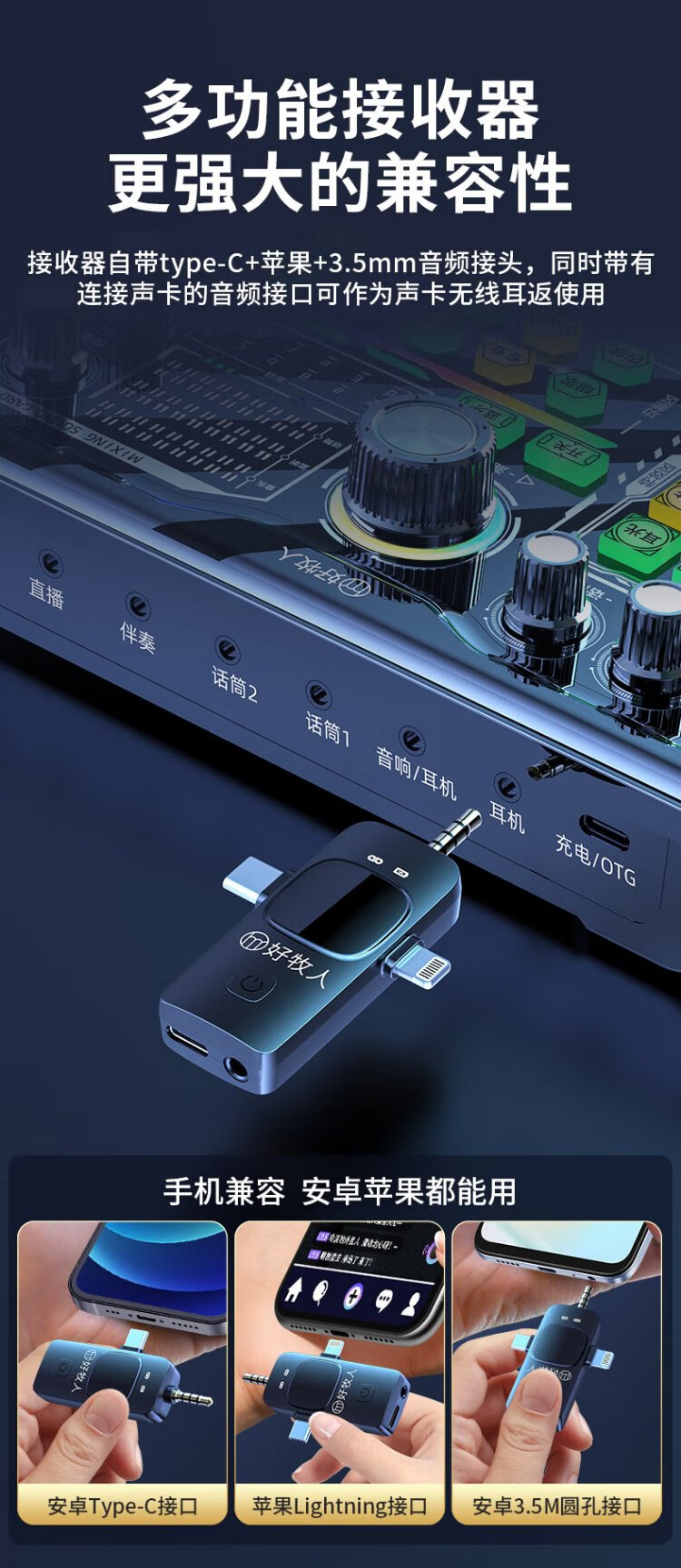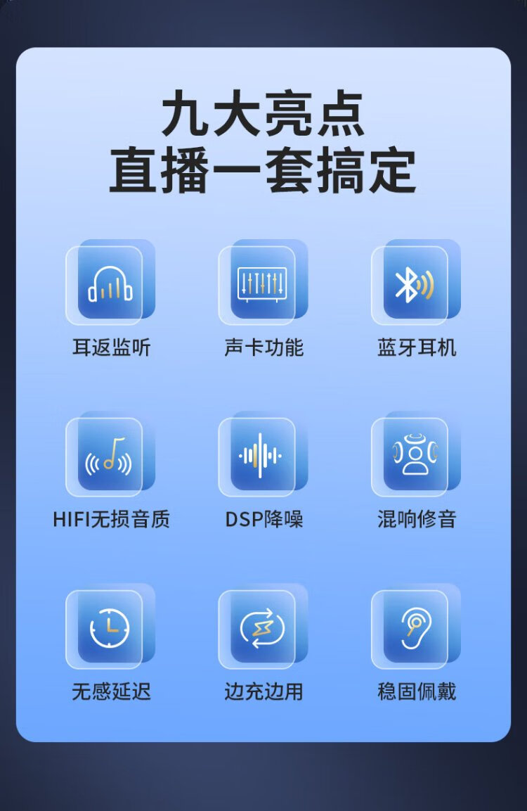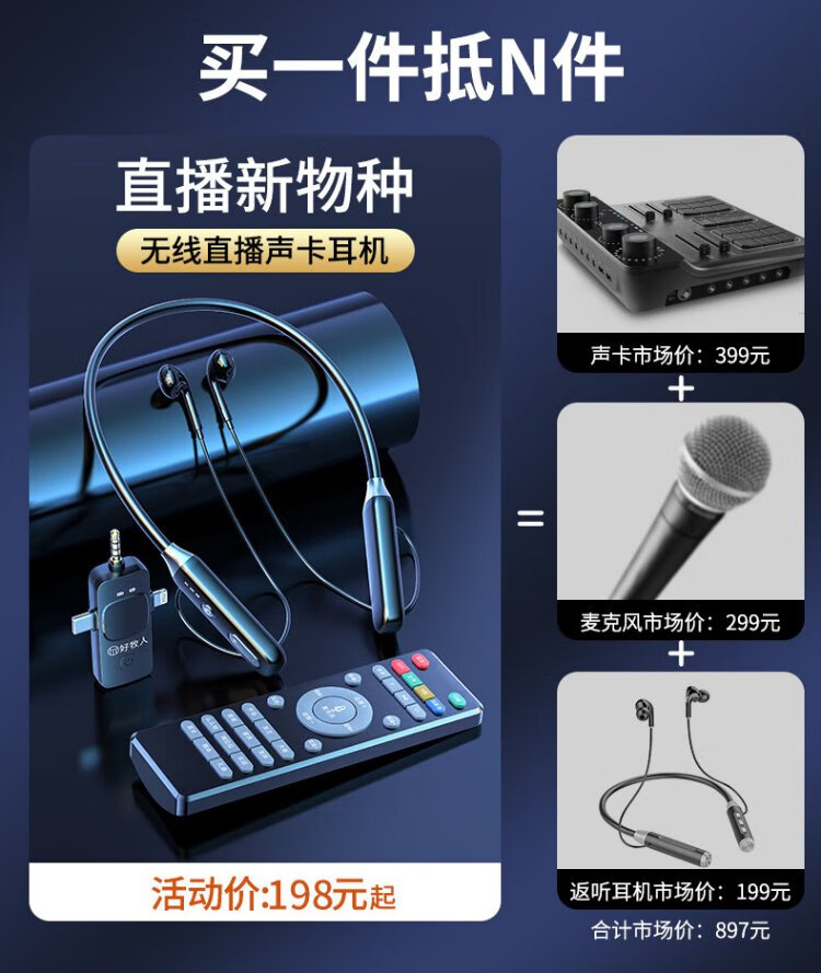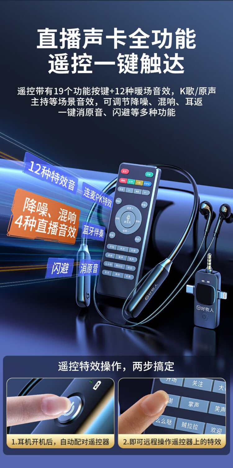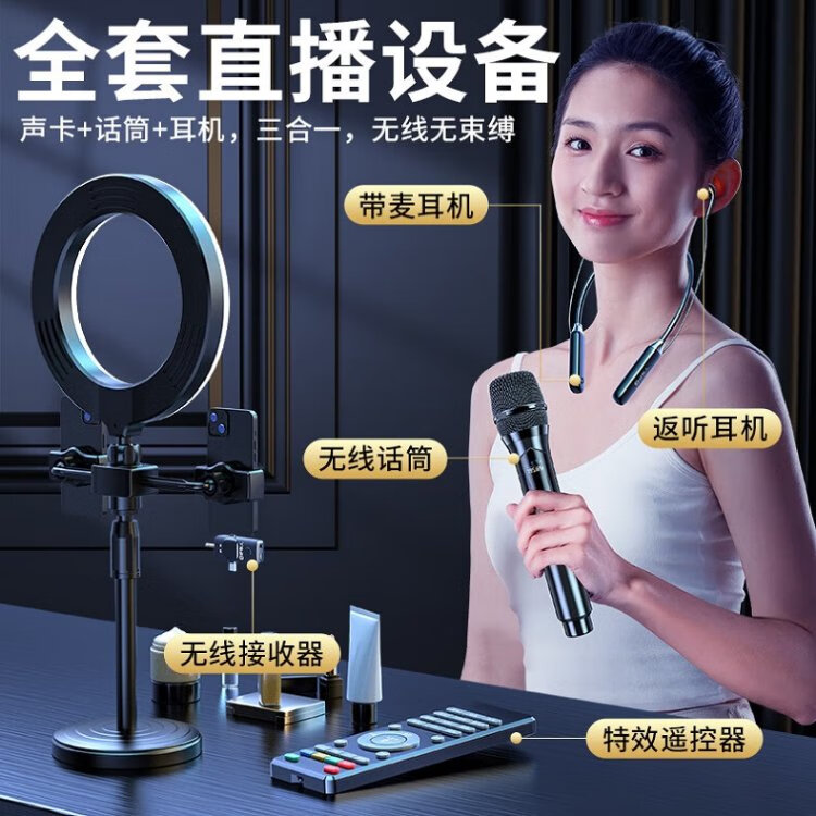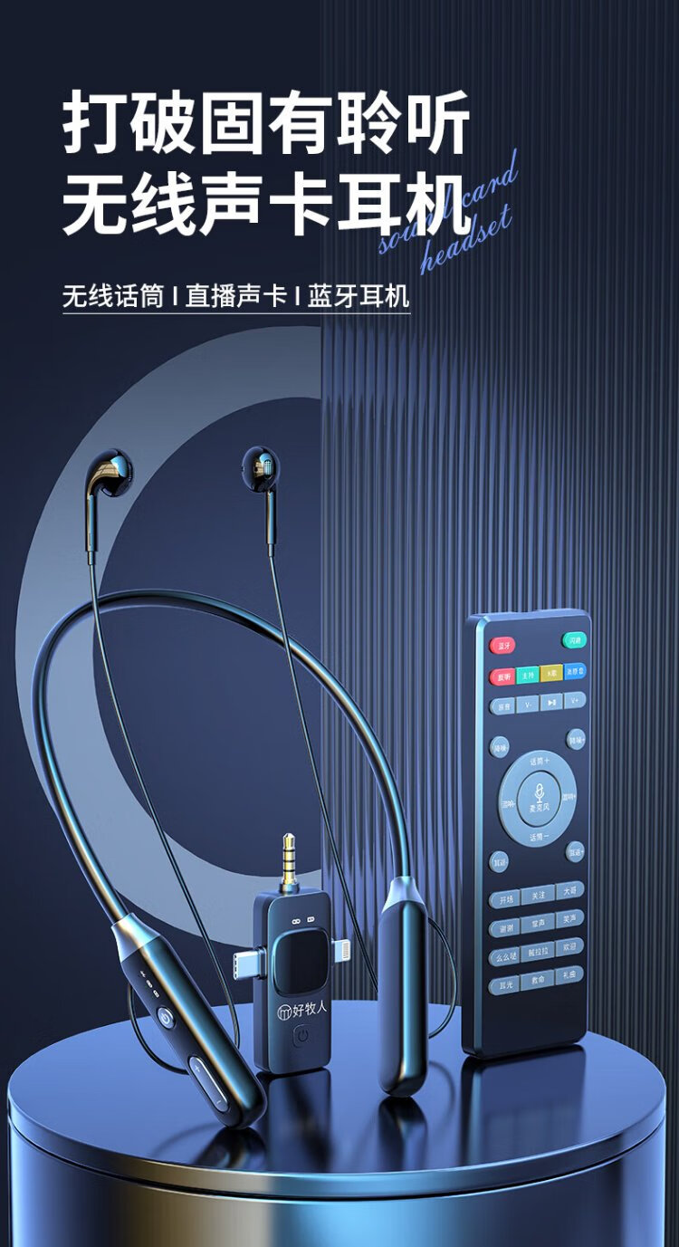 Good Shepherd wireless live broadcast sound card microphone headset anchor dedicated karaoke equipment complete set Douyin Internet celebrity with goods outdoor singing mobile phone Bluetooth headset neck hanging type ear return monitoring single version | sound card and headset all in one Android and Apple universal