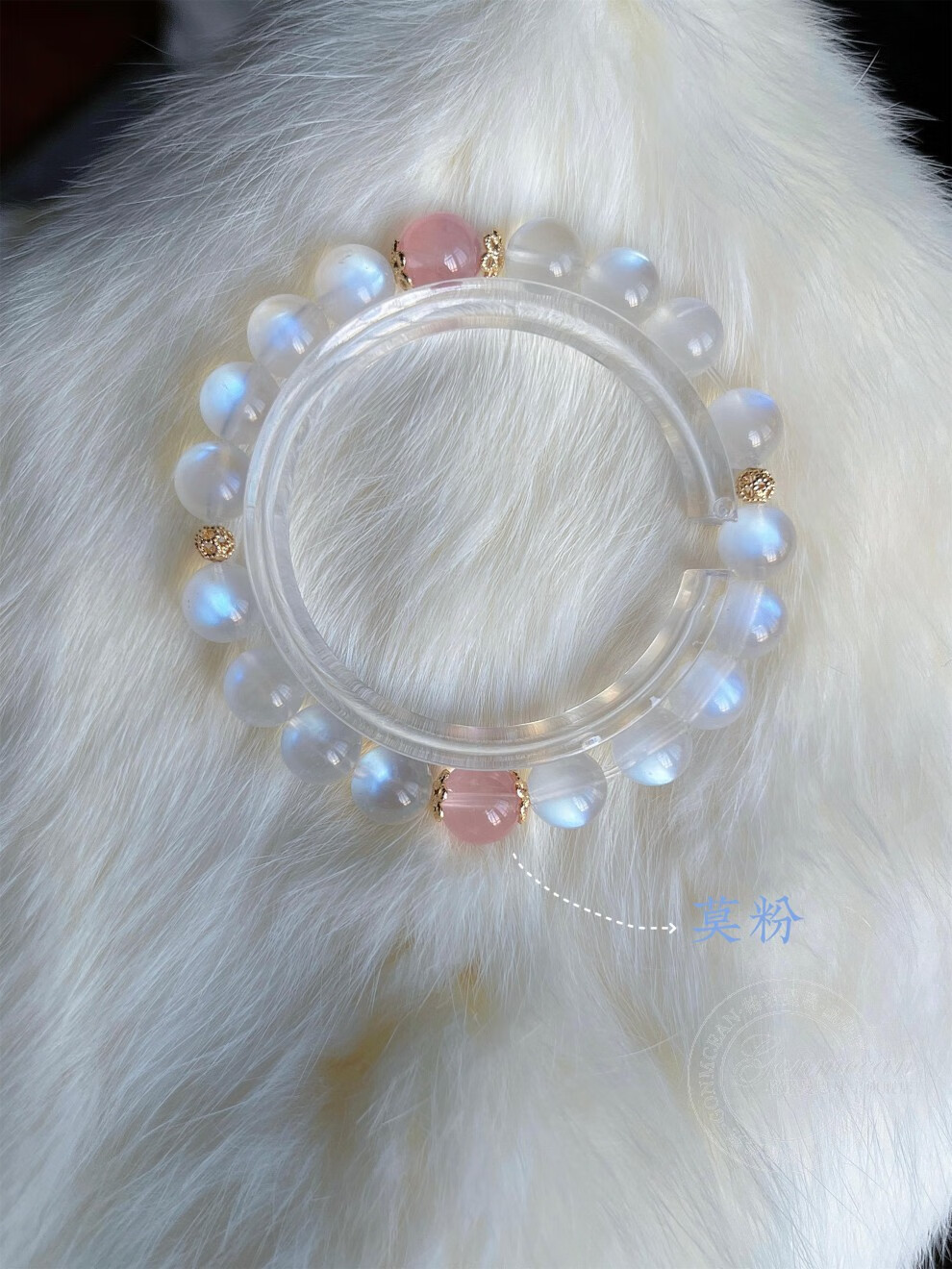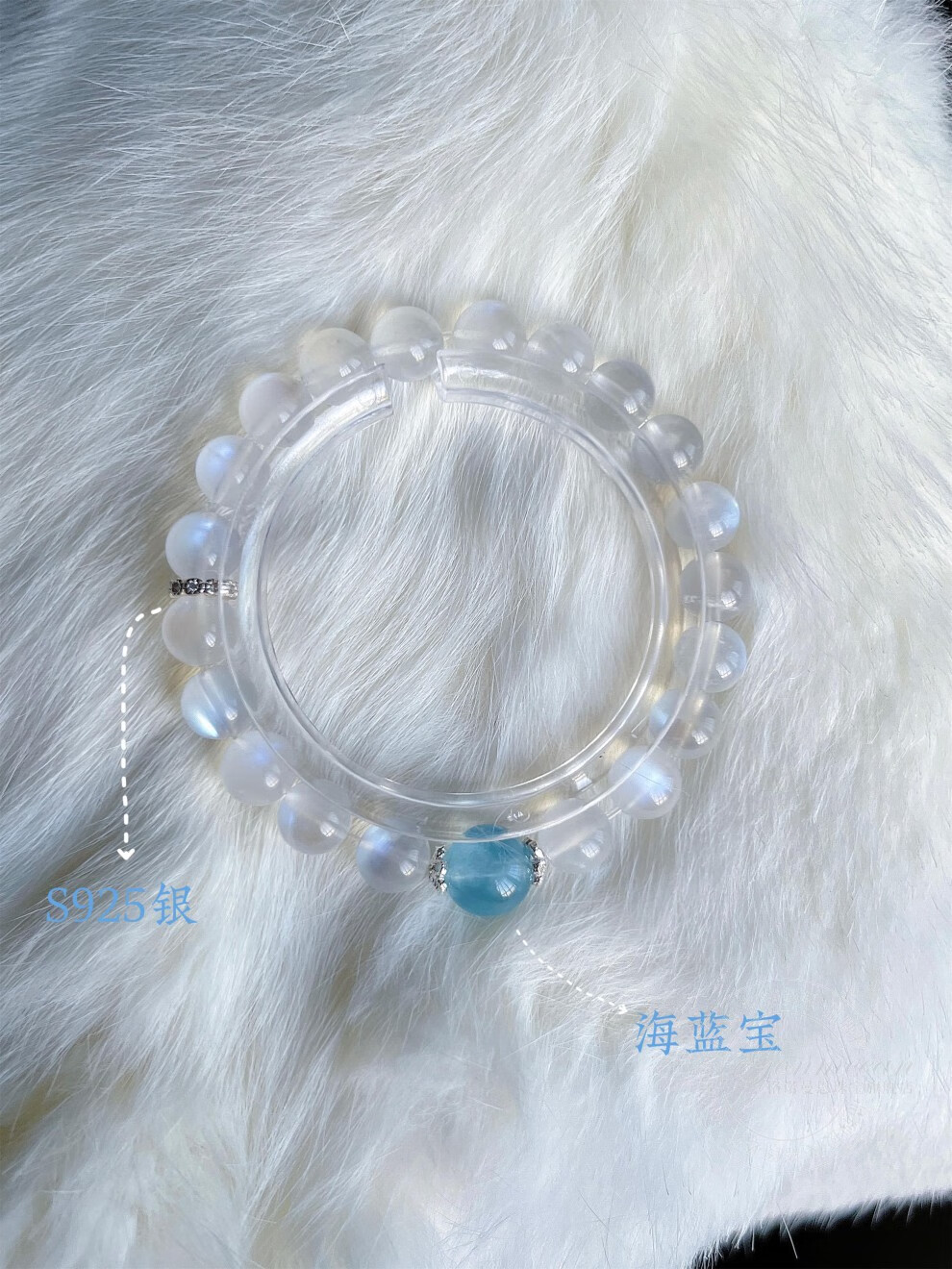 Gnomanormann Blue Moonstone Bracelet Cream Body Bracelet Love Sri Lanka Aquamarine Blue Women's Jewelry Style 1 Beads 6mm