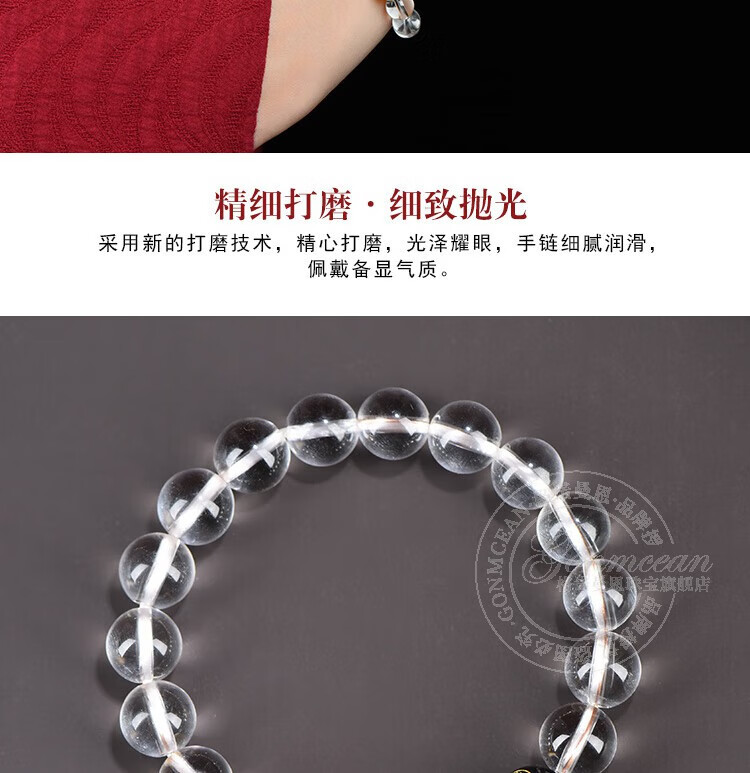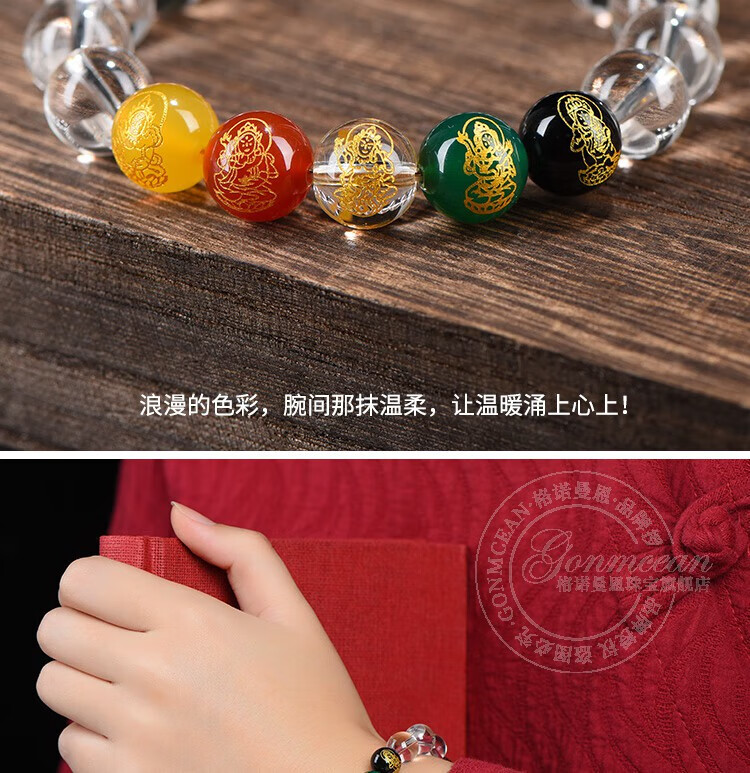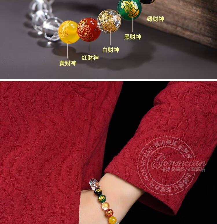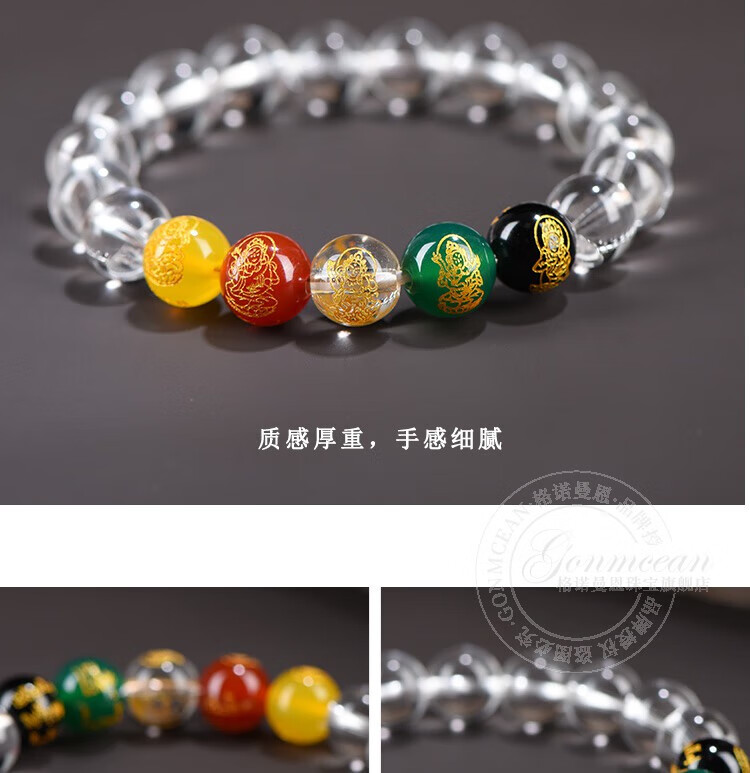 Genomanman white crystal five-way God of Wealth bracelet for women and men white simple crystal jewelry gift beads 8mm