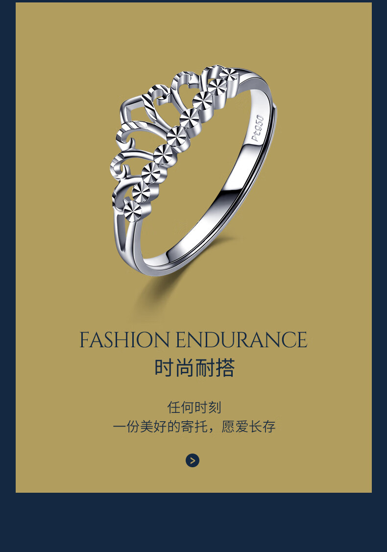 Pt.Charm Goddess Gift PT950 Platinum Ring Women's Exquisite Fashion Crown Ring for Girlfriend and Lover Proposal Ring in Stock 2.6-2.7 Grams