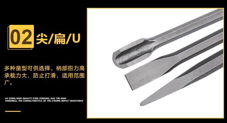 Cute electric hammer, chisel, impact drill, electric pick, pointed chisel, flat chisel, square handle, round handle, hexagonal handle, widened and lengthened shovel, hexagonal handle 17*280 pointed chisel