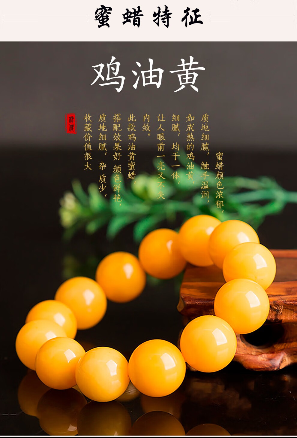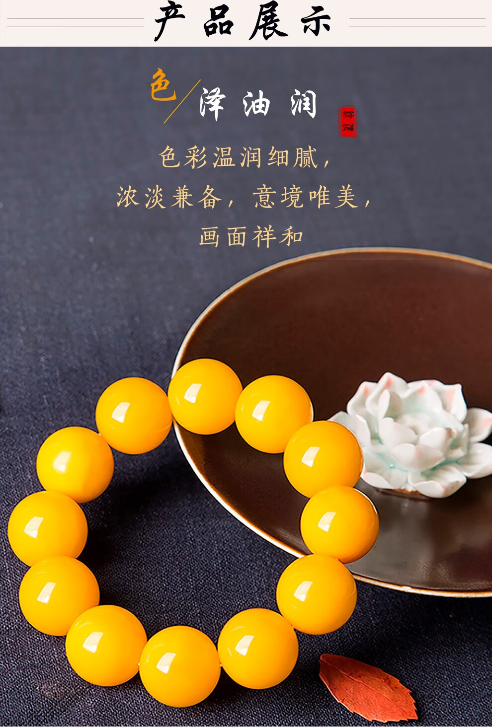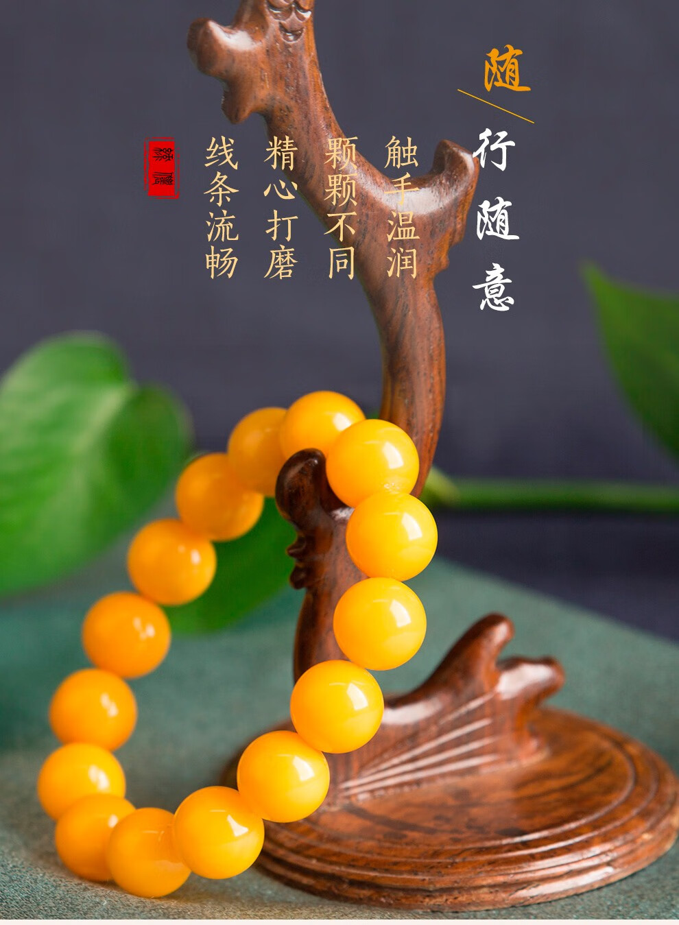Lv Nong Jewelry Chicken Oil Yellow Old Beeswax Single Circle Bracelet for Men and Women Couple Bracelet Birthday Gift Bead Diameter Approximately 8-8.5mm Single Circle Bracelet/Certificate Included
