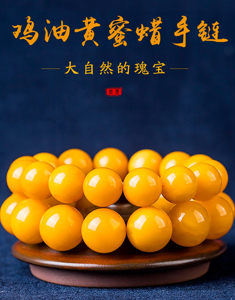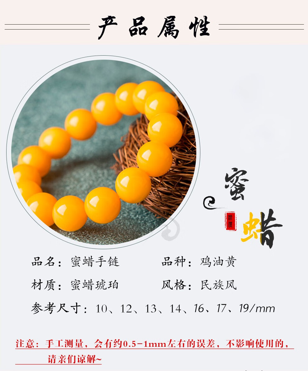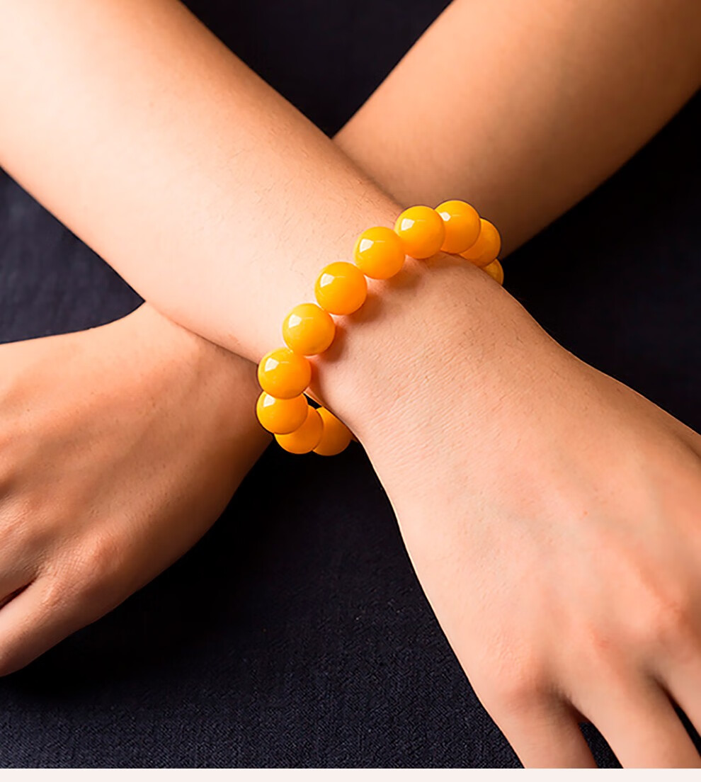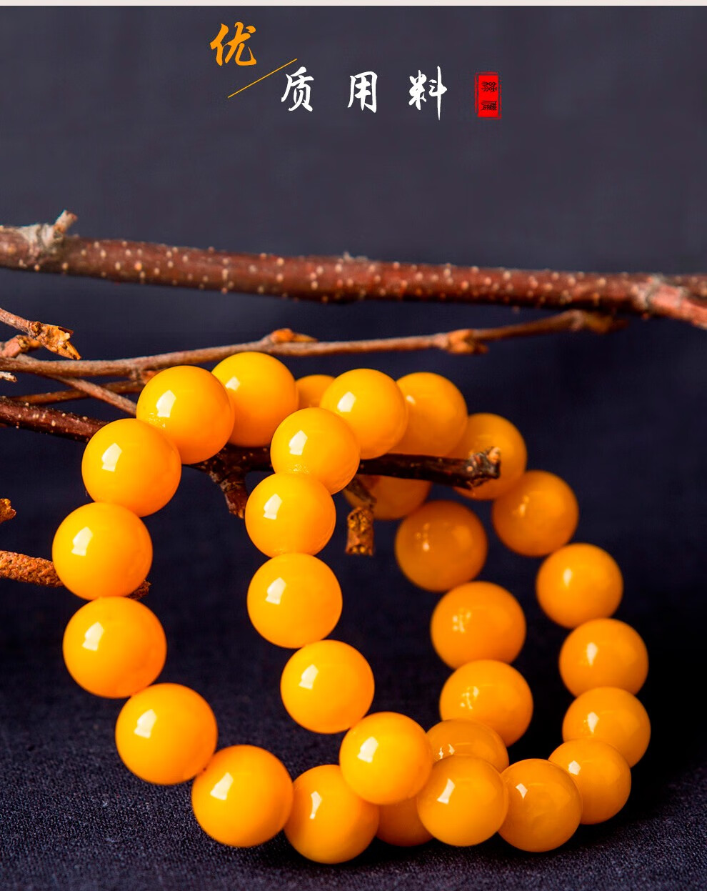 Lv Nong Jewelry Chicken Oil Yellow Old Beeswax Single Circle Bracelet for Men and Women Couple Bracelet Birthday Gift Bead Diameter Approximately 8-8.5mm Single Circle Bracelet/Certificate Included