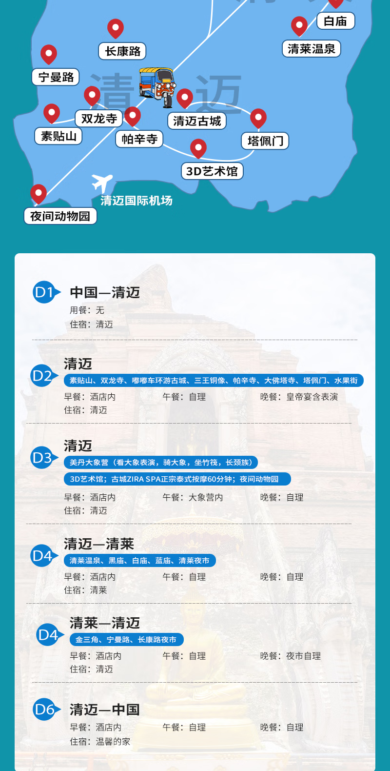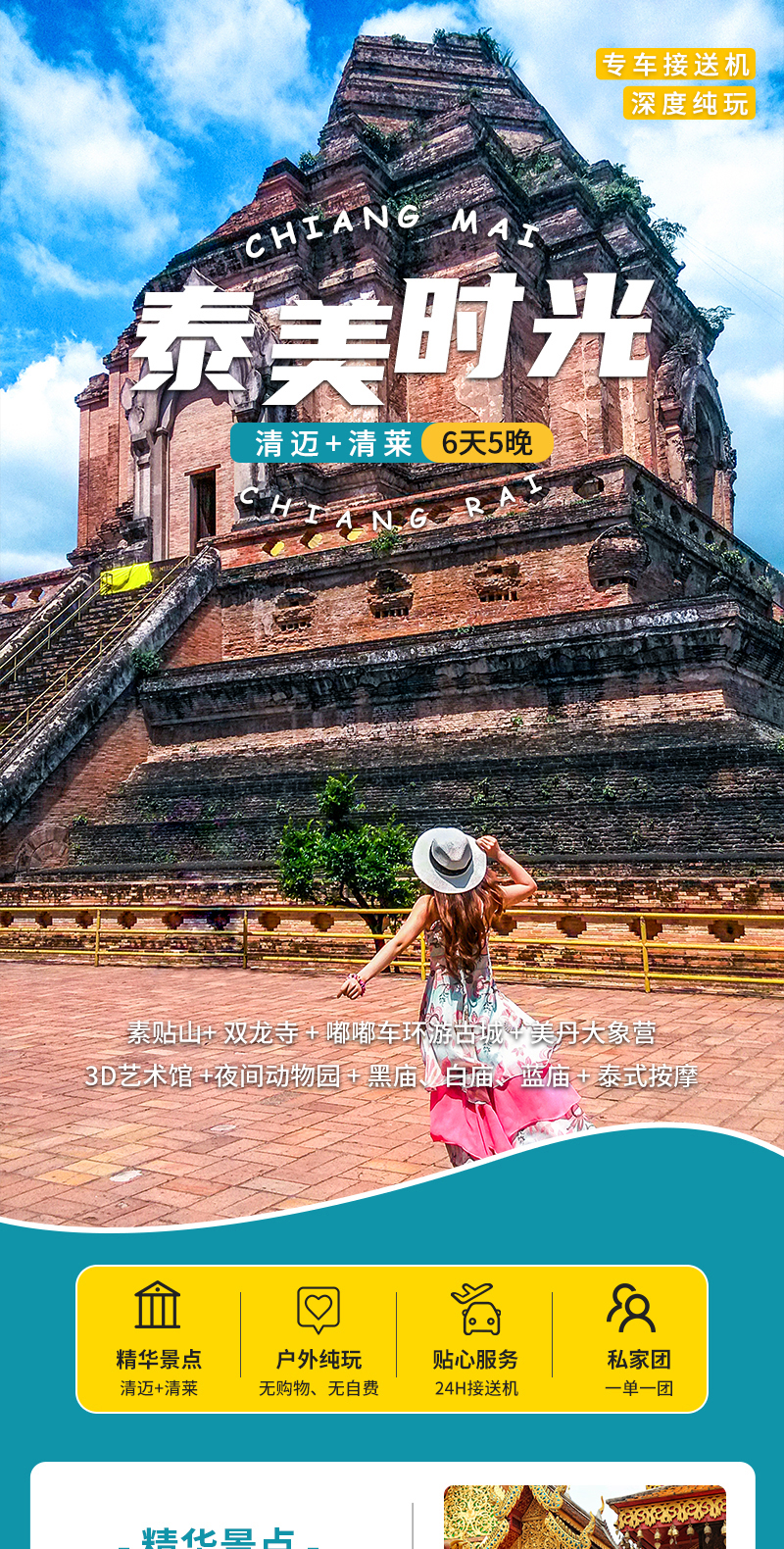 Thailand Chiang Mai + Chiang Rai, Thailand 5 nights and 6 and a half days self-guided trip, one single group, just for fun, no shopping, available for any holidays until October 31st, no price increase, 4-6 people VIP single group