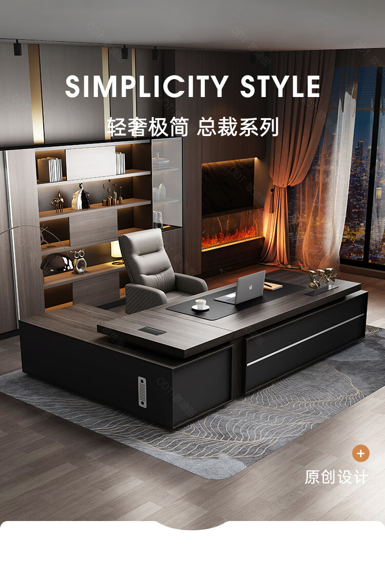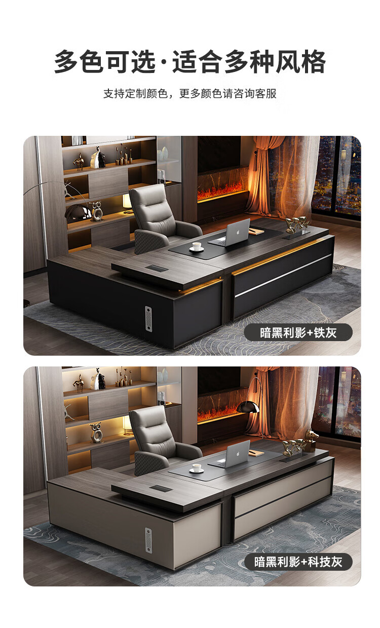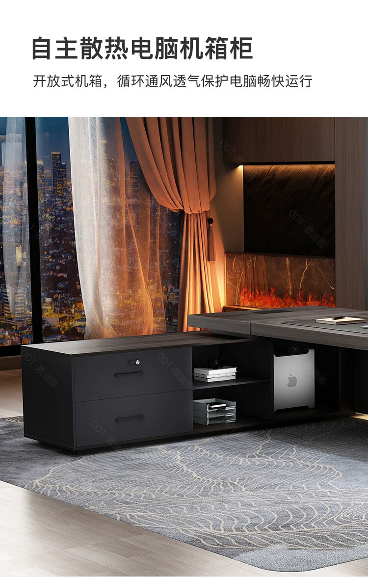 OUDITU President Boss Desk Simple Modern Chairman Leadership Executive Desk Office Supervisor Manager Desk and Chair Combination Dark Shadow-Iron Gray 2.4 Meter Boss Desk Luxurious Double Side Cabinet