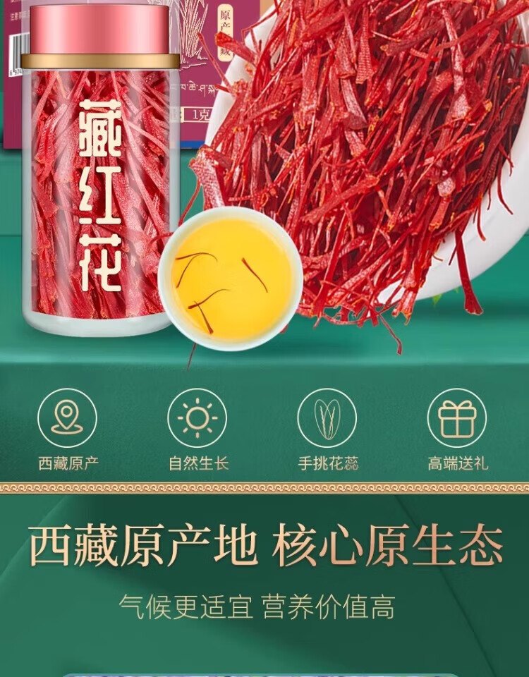 Minnong Saffron Premium Tibetan First Crop Full Red Filament Soaked Saffron Chinese Valentine's Day Gift for Girlfriend Trial Pack 1 Box of Saffron + Tweezers