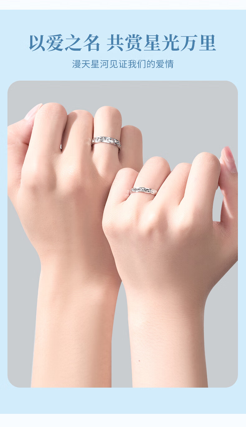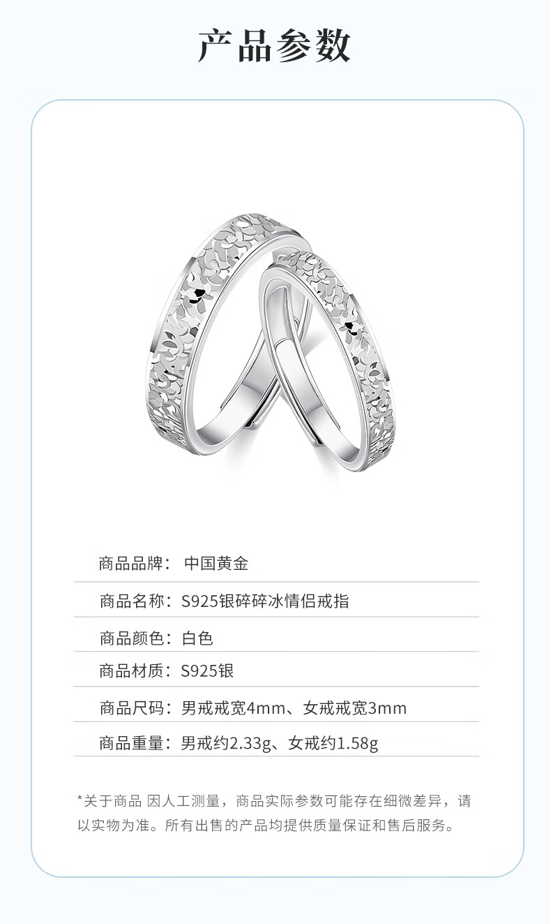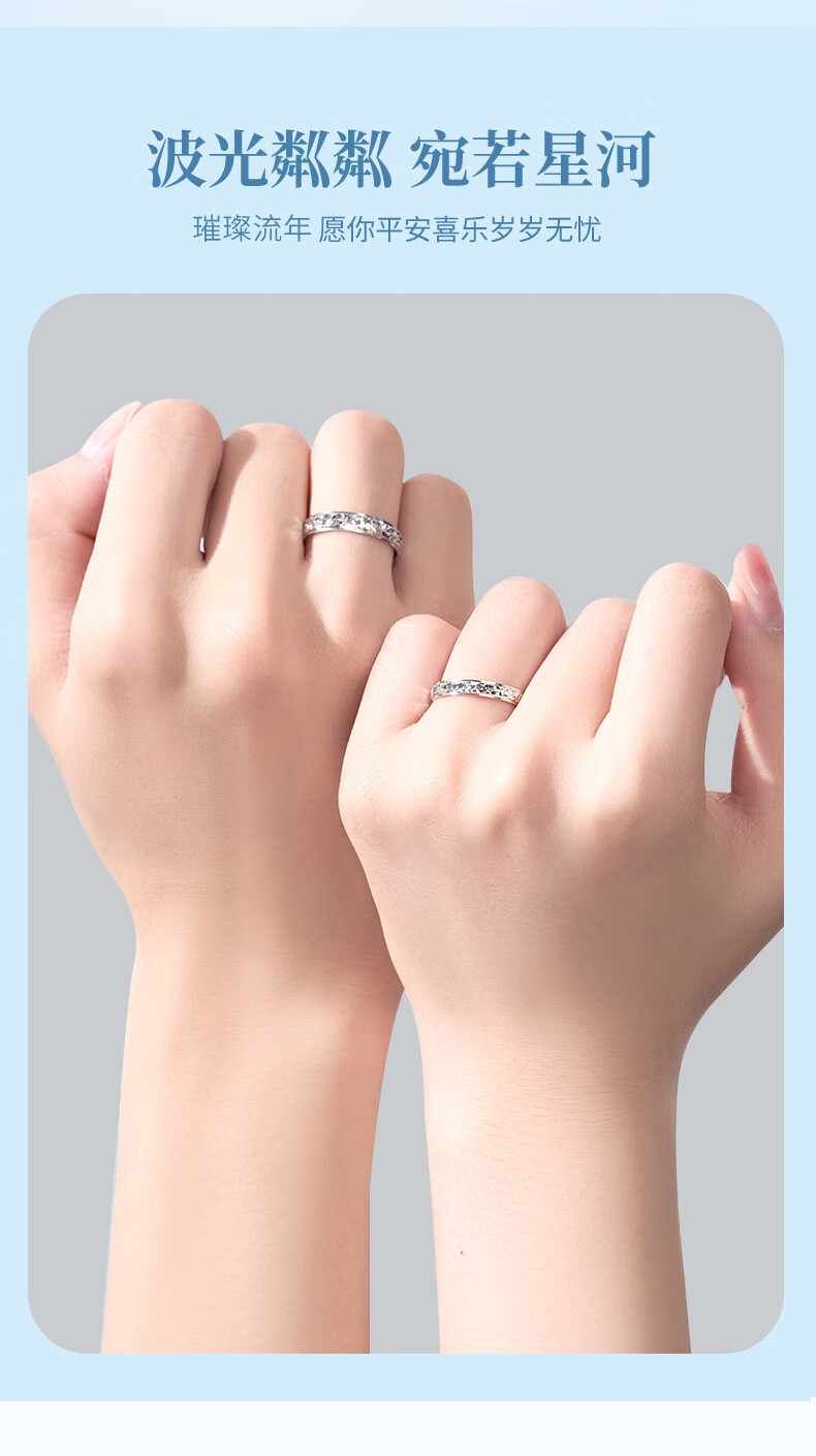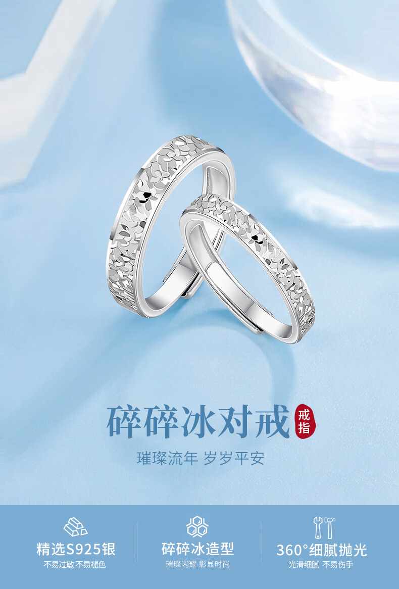 Chinese gold broken ice couple rings a pair of proposal silver rings girl birthday gift girlfriend wife wedding anniversary broken ice couple rings Jingsuda