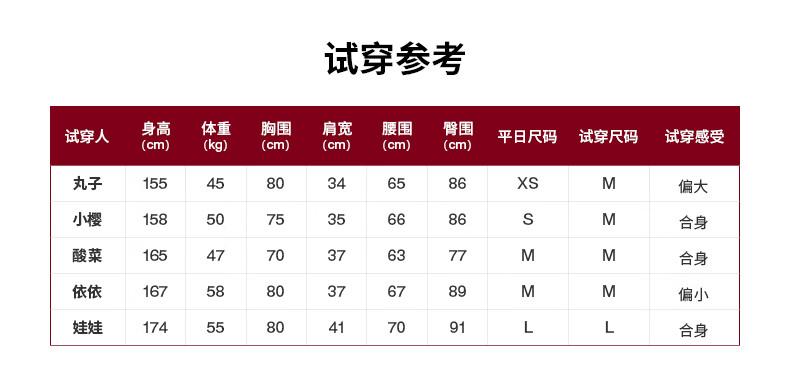 China (cm) 160-165/84-86 165-170 / 88-90 167-172 / 92-96 168-173 / 98-102 170-176 / 106-110