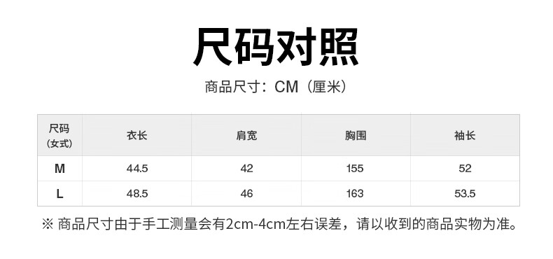 Size (cm) 42 44 46 48 50
