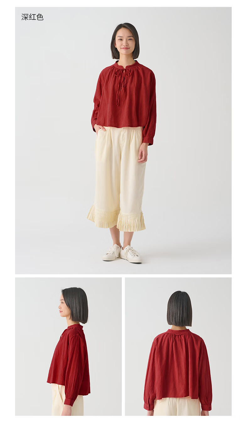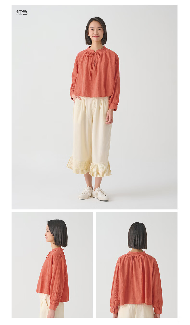 MUJI MUJI IDEE Women's Twisted Long Sleeve Shirt Women's Undershirt Spring and Autumn GAD04C4S Red L (165/88A)