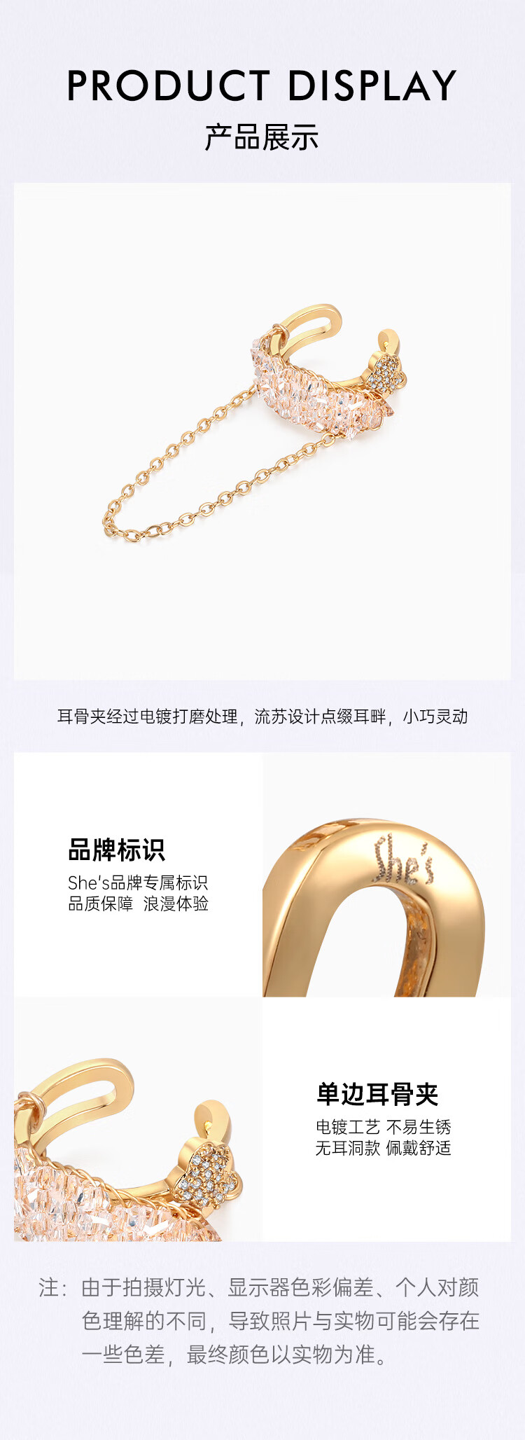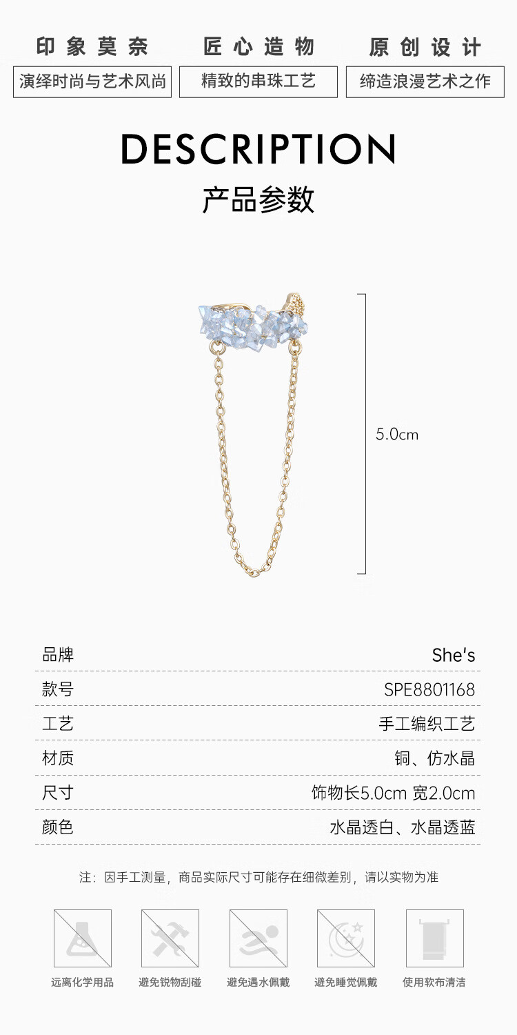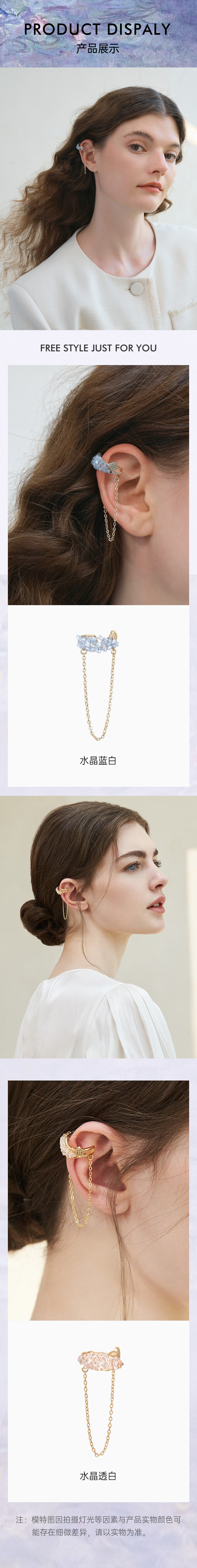 She s Akiko's spring Kamei bright crystal ear cuff without pierced earrings light luxury earrings birthday gift for women crystal blue and white C0