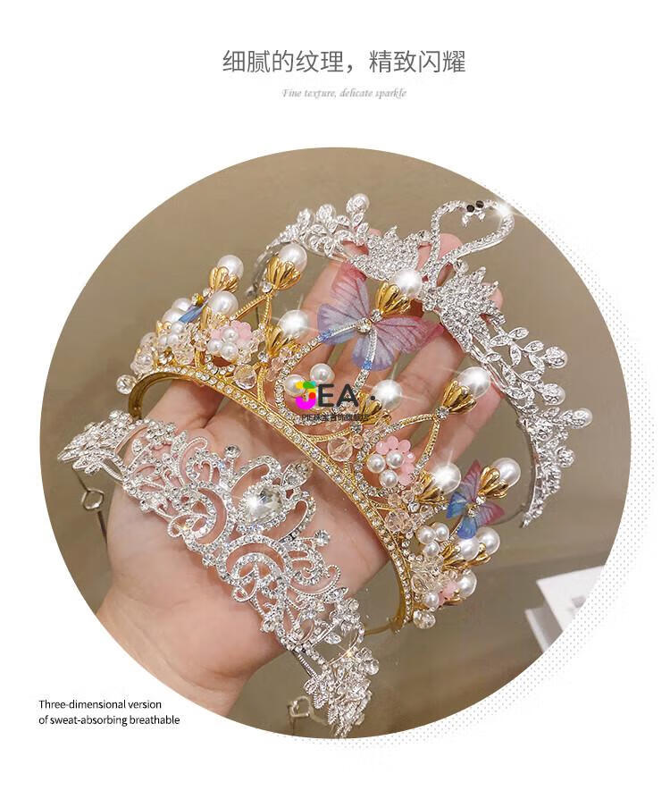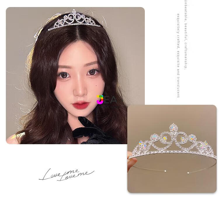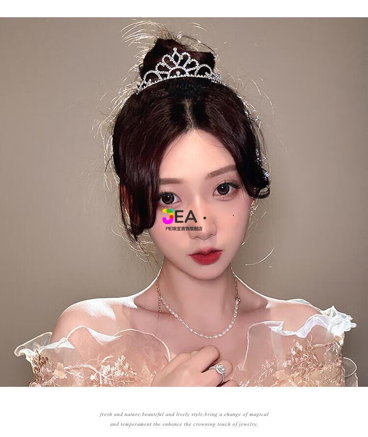 Jea.Pie2025 New Crown Headwear Adult Bride Wedding Rhinestone Headband Female Princess Headband Eighteenth Year Old Coming of Age Ceremony 12# Pink Rhinestone Crown