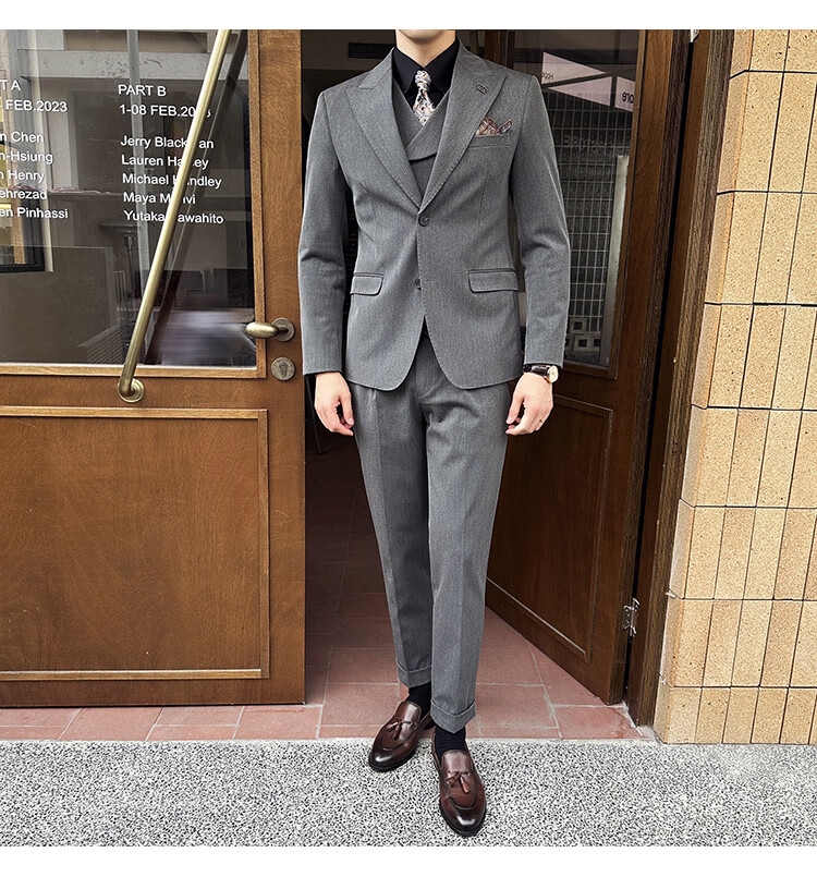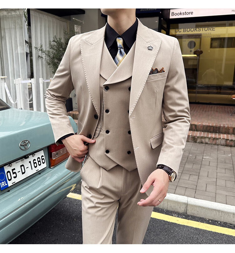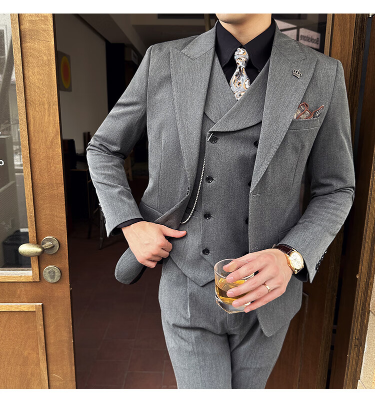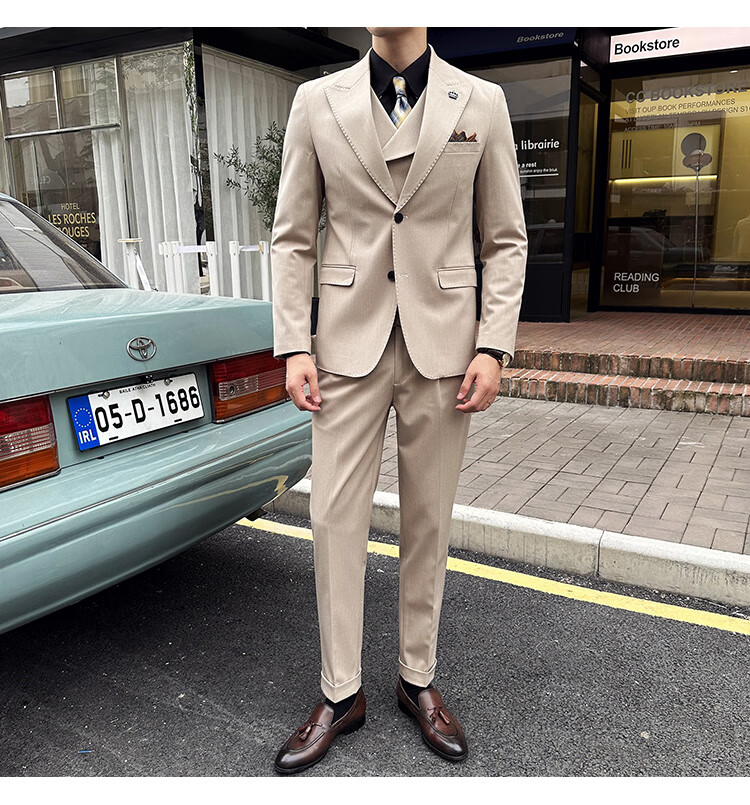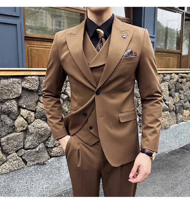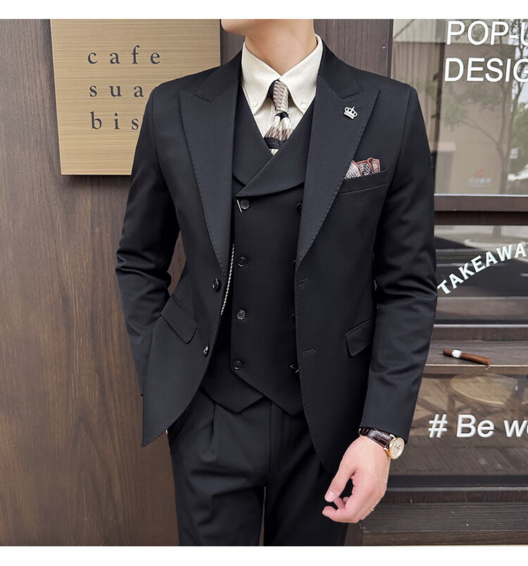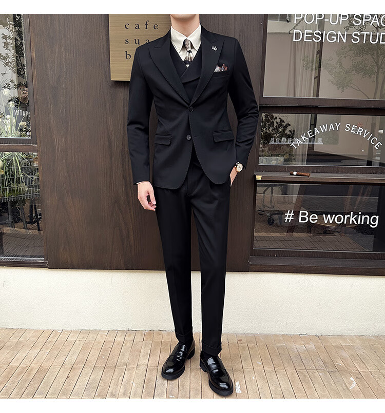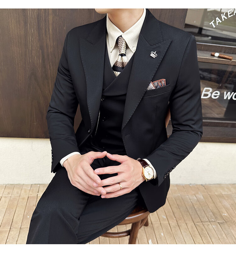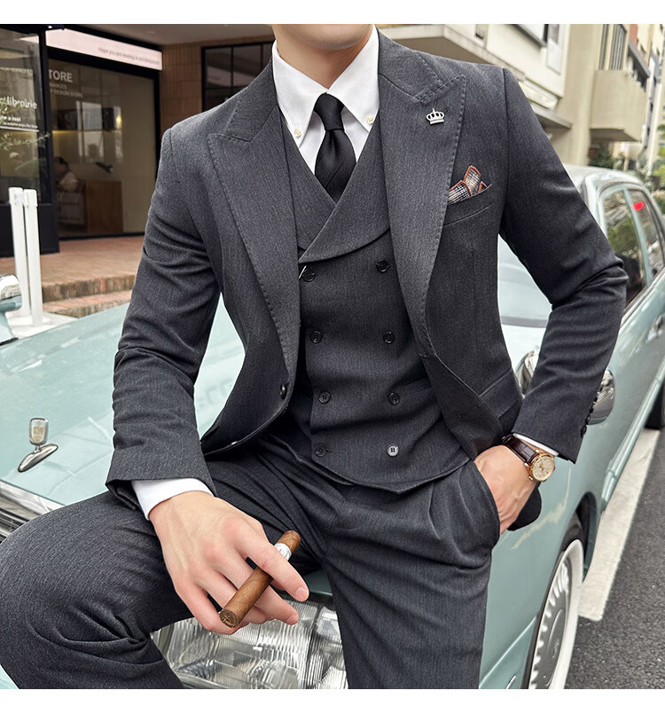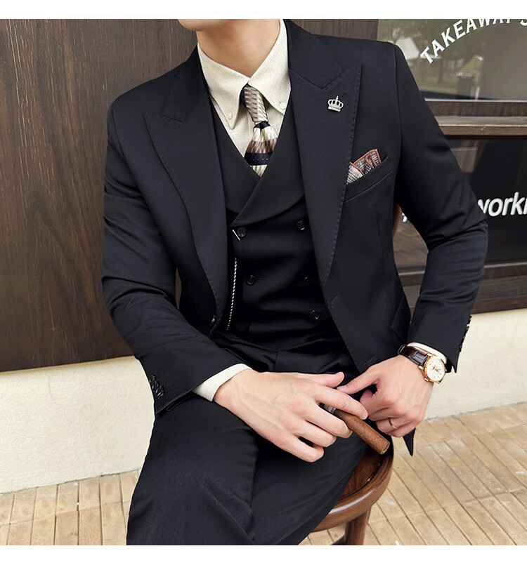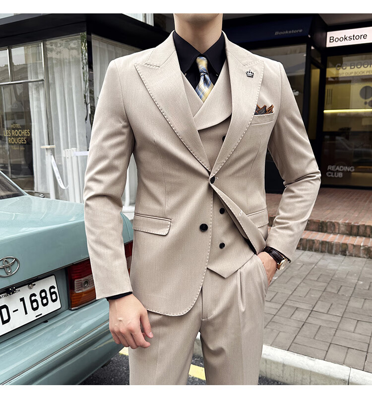 ROMON Italian groom suit men's wedding formal dress Korean style slim lapel business casual suit jacket 9002 navy blue (suit + vest + pants) XL